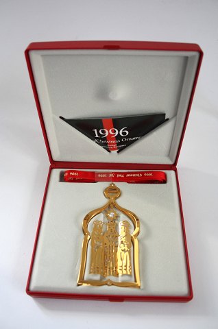 Georg Jensen, Juleuro 2017 Gabriel designet af kunstner Alfredo Häberli. Juleuroen er udført i messing belagt med 24 karat guld. Originalt rødt og blåt silkebånd og gaveæske medfølger. Pæn og velholdt stand. Pris: 475 kr. stk. Lager: 1
