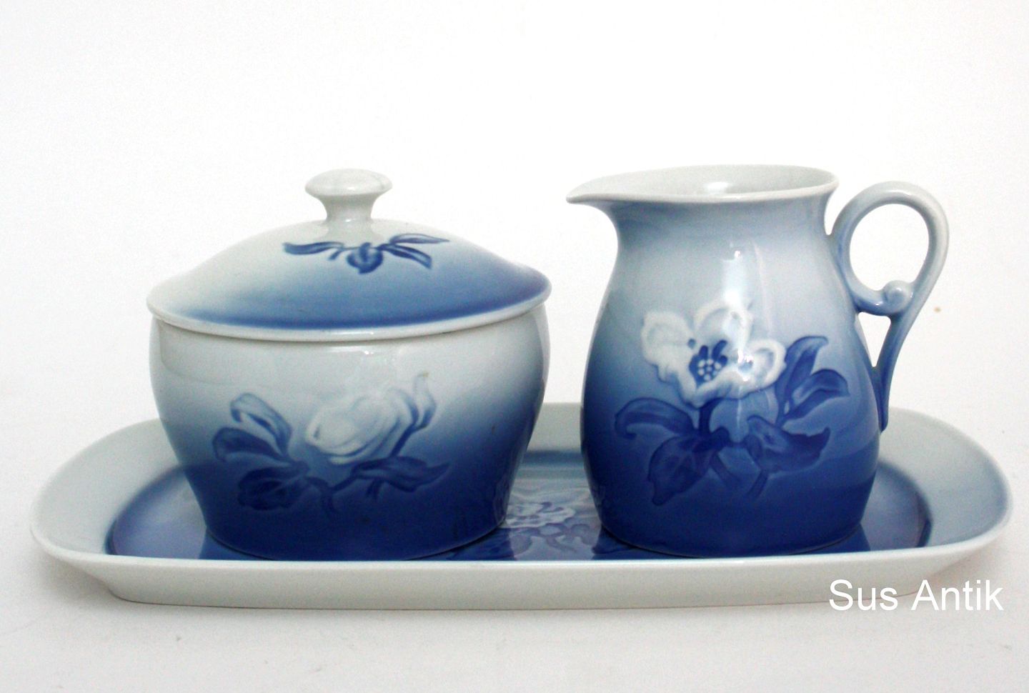 Bing & Grøndahl, Julerose. Sukker og fløde sæt med bakke, lille.