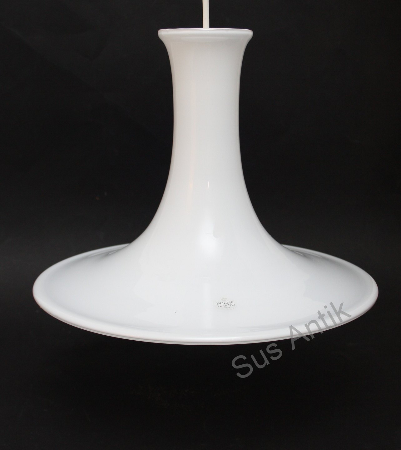 Holmegaard/Fyens Glasværk, Mandarin pendel i hvid opaline glas. Designet af Michael Bang i 1983. Højde 23 cm. Diameter 30 cm. Pris: SOLGT