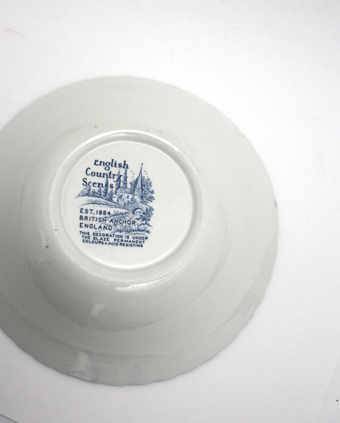 British Anchor, England, English Country Scenes, Kartoffelskål. Diameter 23 cm. Højde 6 cm. Lettere overfladekrakelering. Pris: 125 kr. stk. Lager: 1