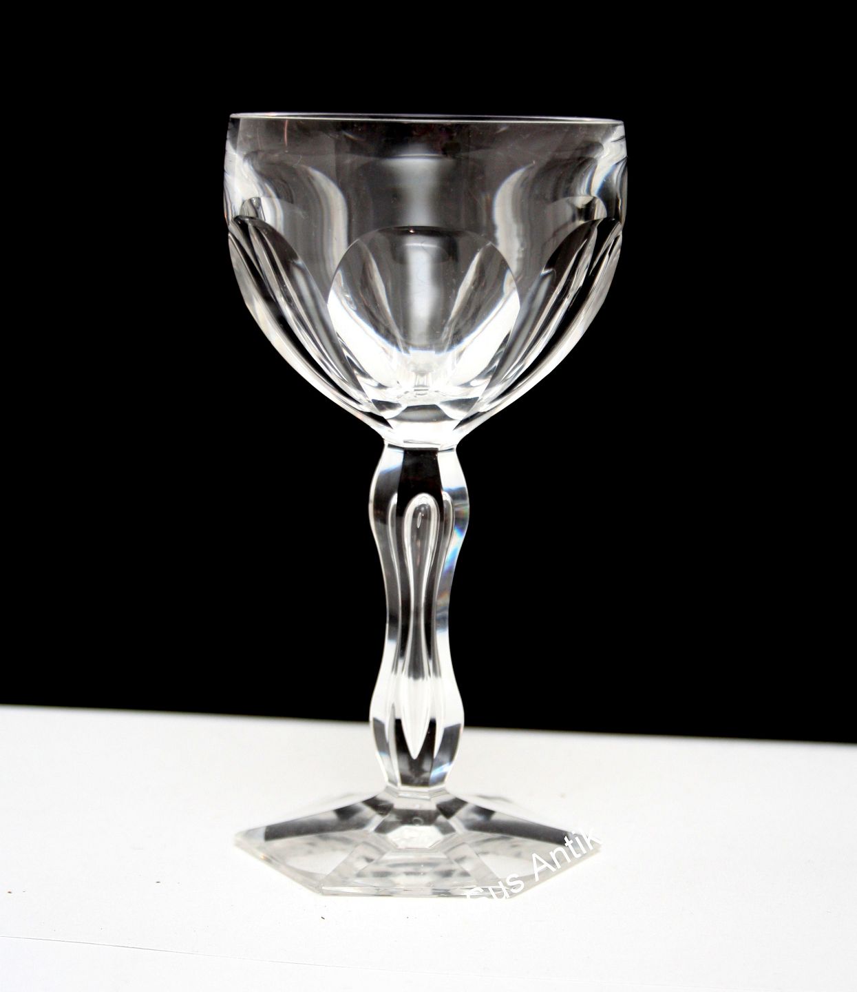 Holmegaard/ Val Saint Lambert, Haakon. Vinglas, højde 14,3 cm. Diameter 7,5 cm. Med ubetydelige chipafslag på den sekskantede fod. Pris: 300 kr. stk. Lager: 3