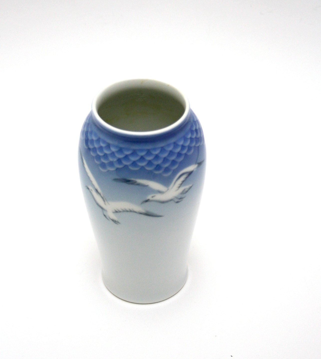Bing & Grøndahl, Måge uden guld, vase. Nr. 201. Produceret 1962-1970. Højde 13,5 cm. Øvre diameter 5,5 cm. I. sortering. Fin stand. Pris: SOLGT