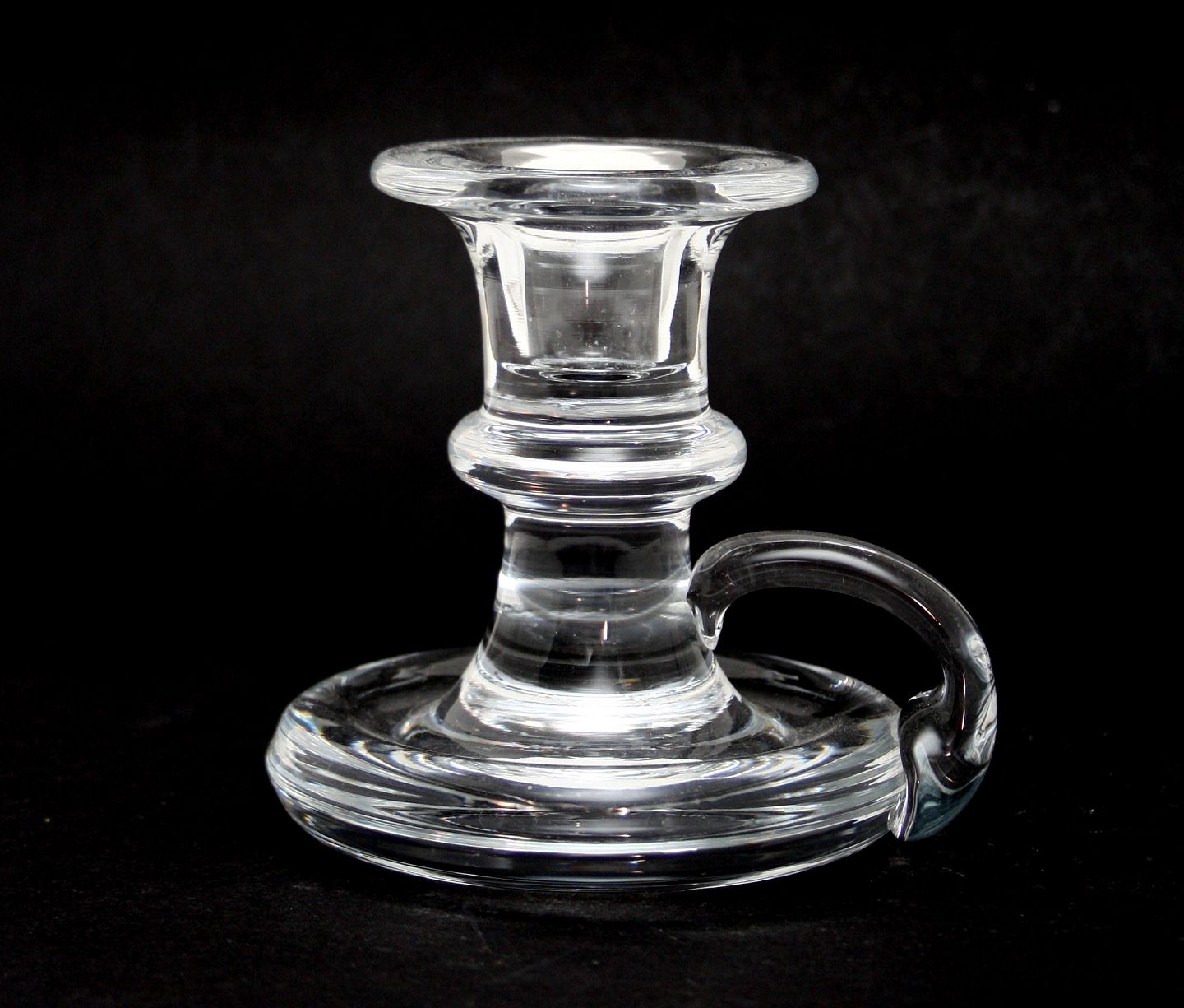 Holmegaard, Mars, Kammerstage klart hvidt glas. Designet af Michael Bang 1976-1989. Højde 10,7 cm. Diameter 10,5 cm. Fin stand. Pris: 175 kr.