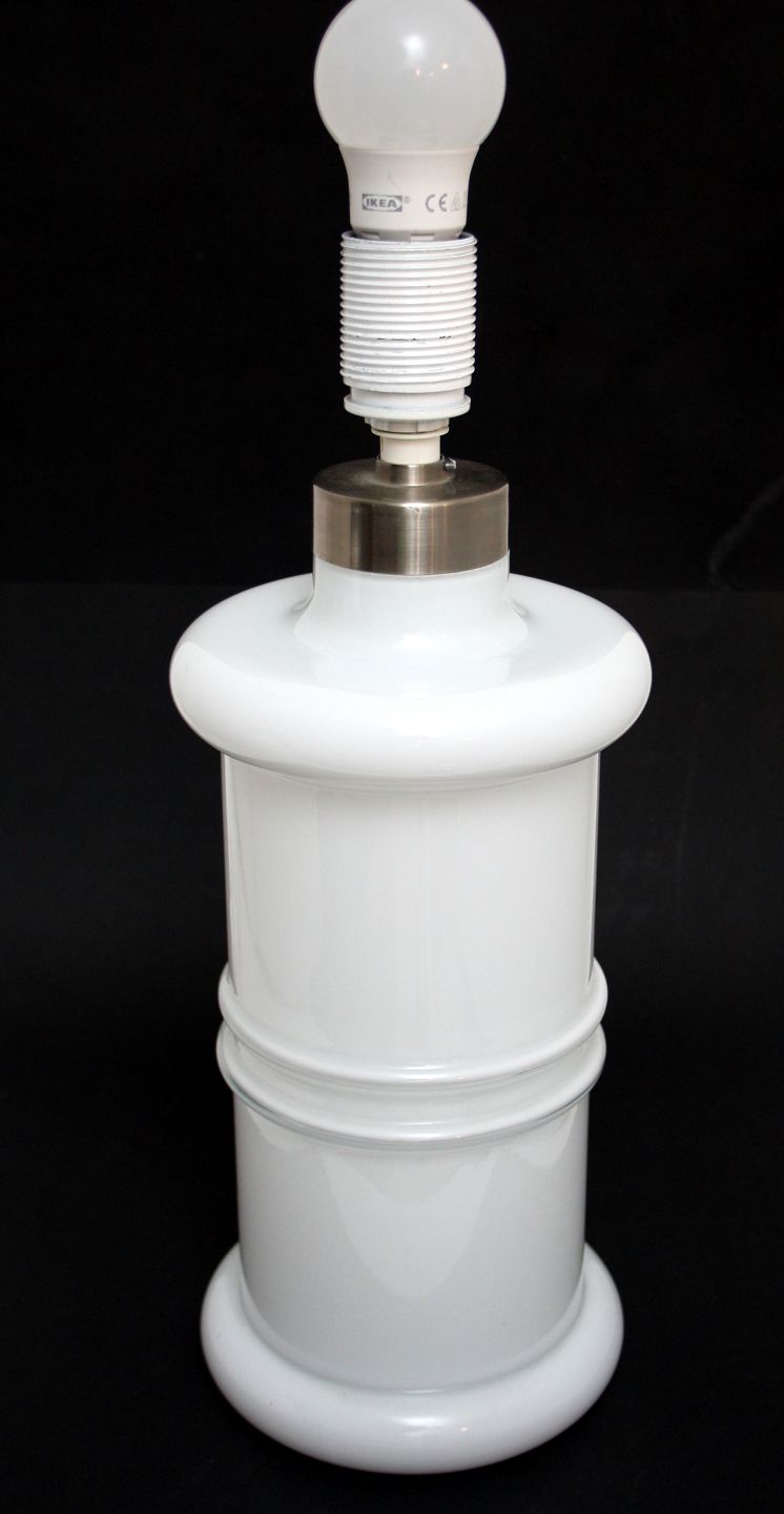 Holmegaard, Apoteker serien, hvid opaline lampe i stor størrelse. Designet af Sidse Werner 1985. Højde incl. fatning 40 cm. Diameter 15 cm. Første foto Arkivfoto. Fin stand. Pris: 950 kr. Lager: 2