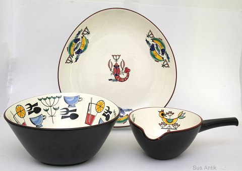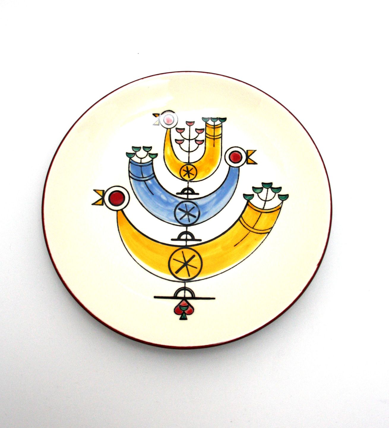 Knabstrup, Symfoni designet af Piotr Baro, formgivet af Johannes Hansen. I produktion i perioden 1959-61. Dessert/Sidetallerken. Nr. 202. Diameter 17,5 cm. Overfladekrakeleringer, ellers flot stand. Pris: 100 kr. stk. Lager: 10