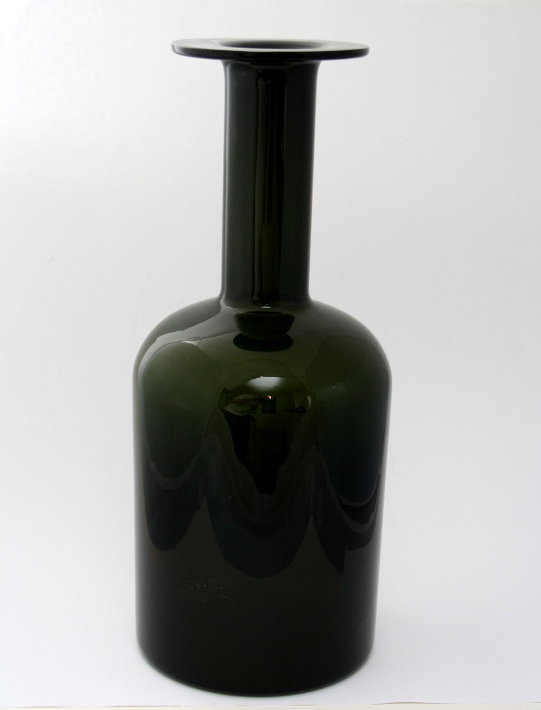 Kastrup-Holmegaard Glasværk, Mellemstor flaskegrøn gulvvase, nr. 3 på ekstrafoto. Højde 37 cm. Designer Otto Brauer 1959. Enkelte ridser og let brugsspor indvendig. Pris: SOLGT