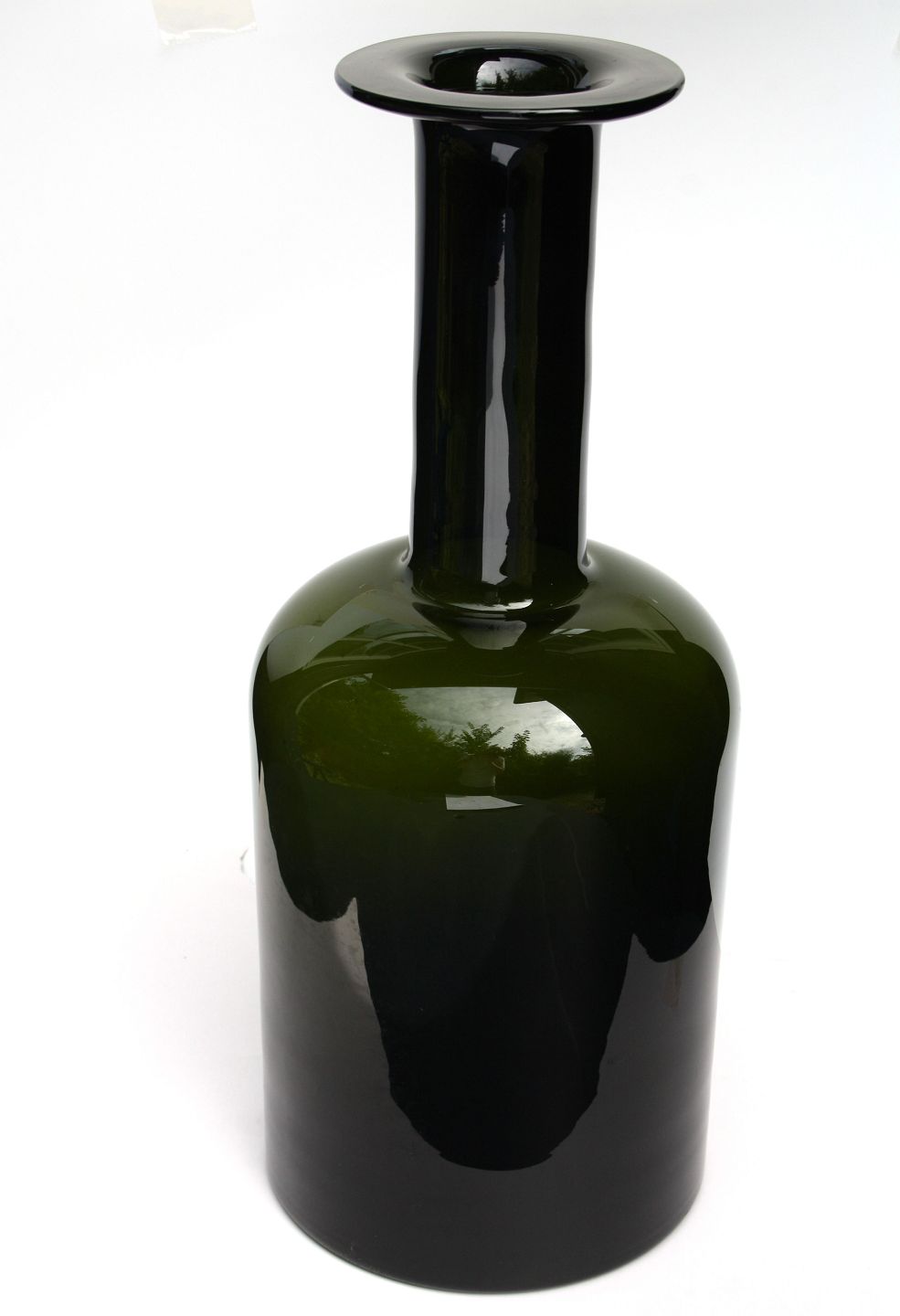 Kastrup-Holmegaard Glasværk, Stor flaskegrøn gulvvase, nr. 4 på ekstrafoto. Højde 52 cm. Designer Otto Brauer 1959. Lettere brugsspor indvendig. Pris: SOLGT