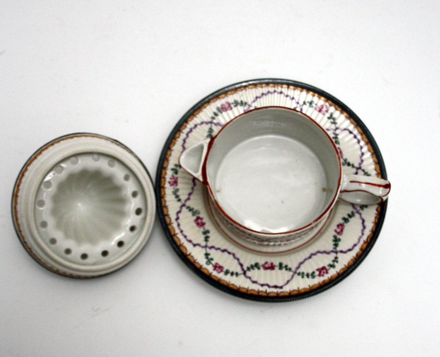 France, Citronpresser i 3 dele. Rillet porcelæn med metalkant. Højde 9,5 cm. Ganske bedårende. God stand. Pris: SOLGT