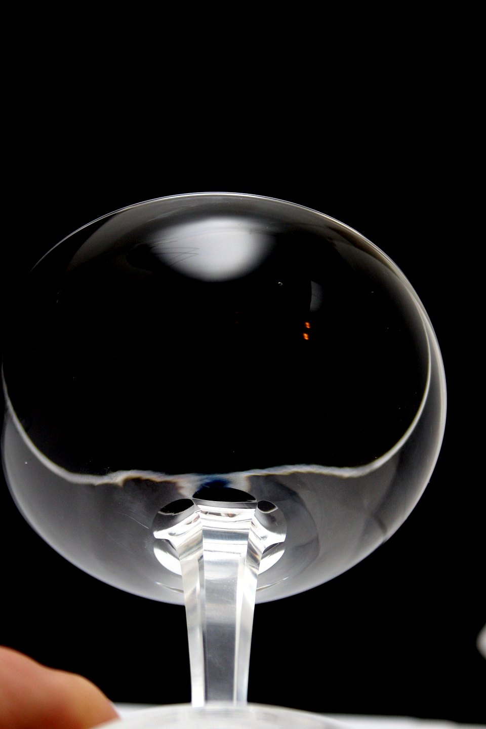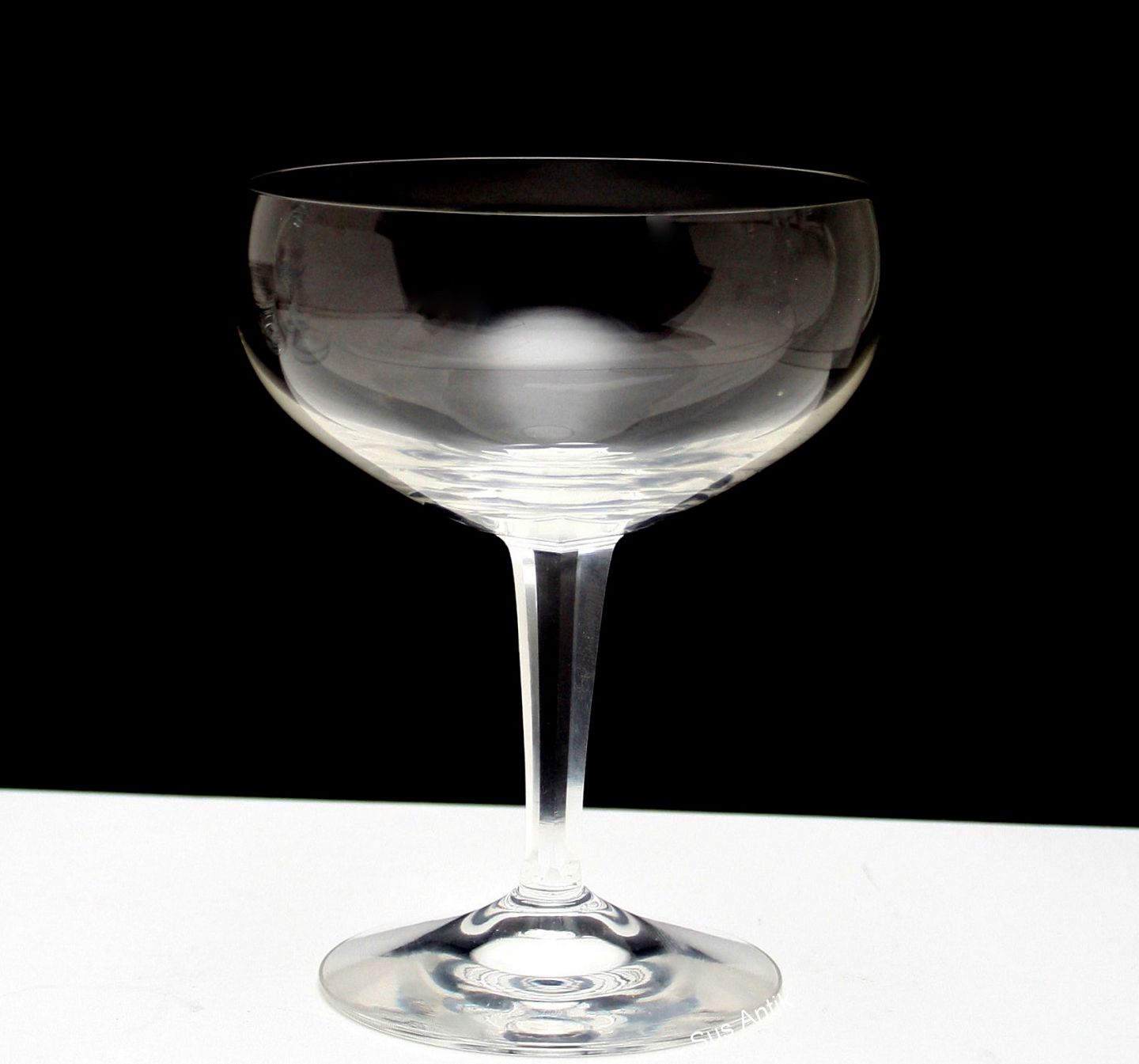 Holmegaard glasværk 1916-50, Aage (antagelig), Champagneskål med facetslebet stilk der munder ud i bunden af kummen. Klingende krystal. Højde 12 cm. Diameter 9 cm. Målene er de samme som Holmegaards prøvesamling på Aage champagneskål. Flot stand. Pris: SOLGT