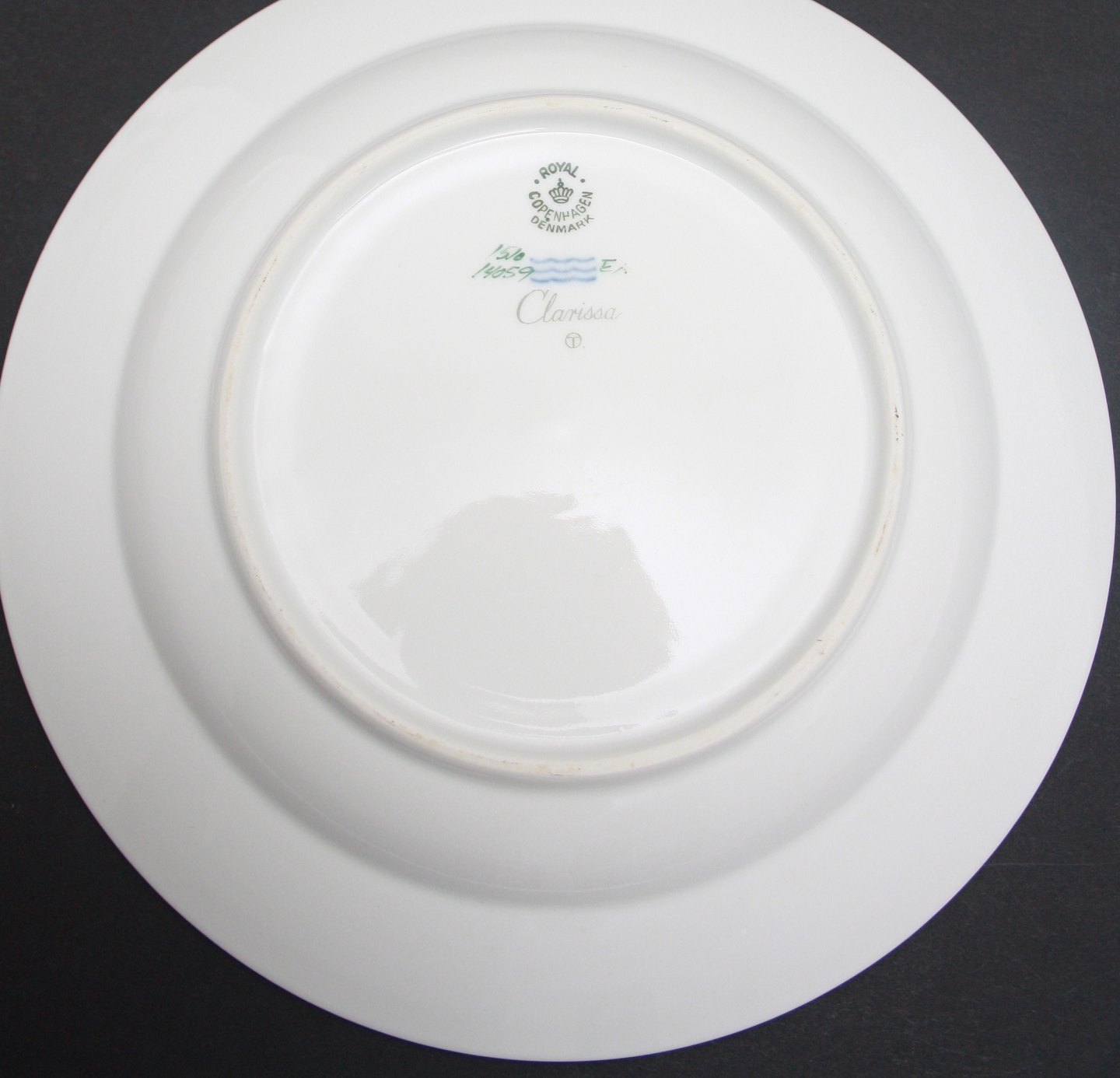 Royal Copenhagen, Clarissa. Designet af Thorkild Olsen i 1950'erne. Hvidt riflet stel med guld- og rosa/beige kanter, samt blomstermotiv i guld. Middagstallerken, dyb. Nr. 1510/14059. Diameter 24,5 cm. II. sortering. Fin stand. Pris: 85 kr. stk. Lager: 12