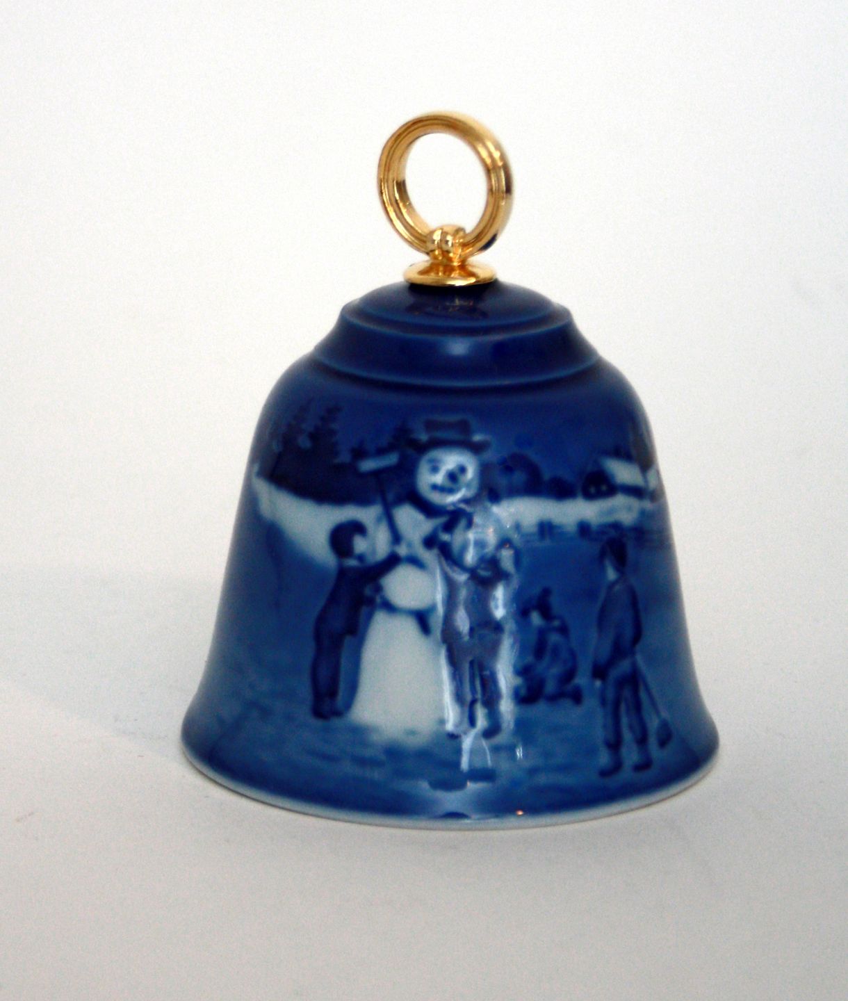 Bing & Grøndahl, Lille juleklokke 2003, Børn der bygger snemand. Højde 8 cm. I. sortering. Pris: SOLGT