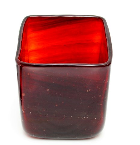 Rød cylinderformet vase hvid indvendig. Højde 24 cm. Diameter 7 cm. Fremstår med ridse, se ekstra foto. Pris: 250 kr.