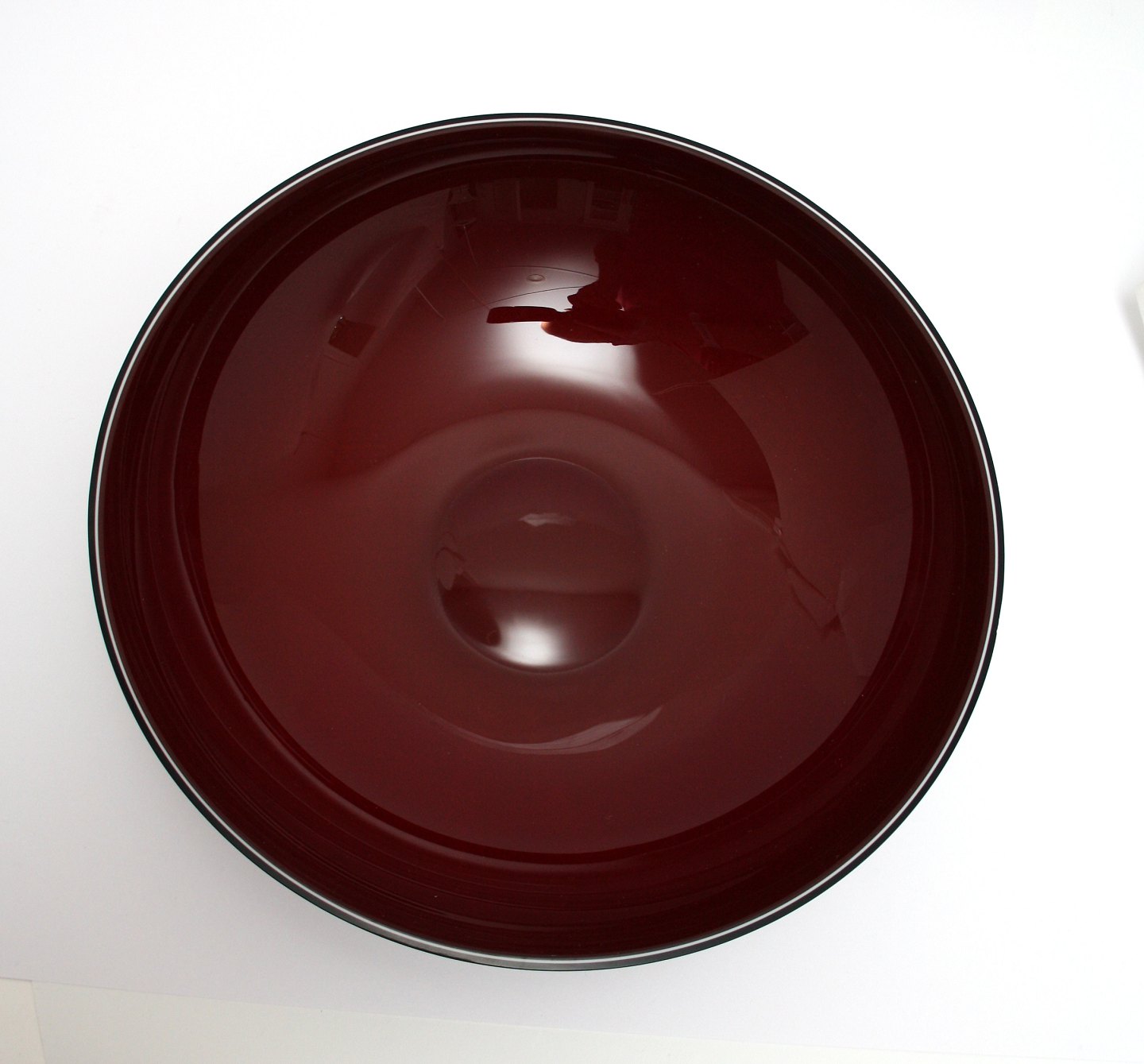 Holmegaard, Sense, Stor flad bordeaux skål. Designet af Anja Kjær Holmegaard 2004. Diameter 29,5 cm. Højde 8 cm. II. sortering enkelte små bobler indvendig. Pris: SOLGT