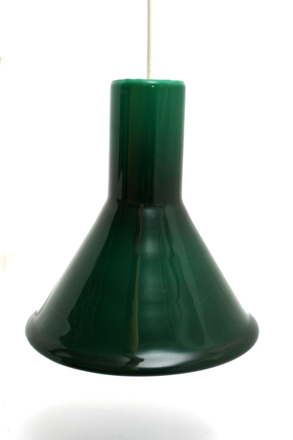 Fyens Glasværk/Holmegaard, Grøn P&T pendel lille model. Designet af Michael Bang i 1972. Højde 22 cm. Nederste diameter 21 cm. Pris: SOLGT