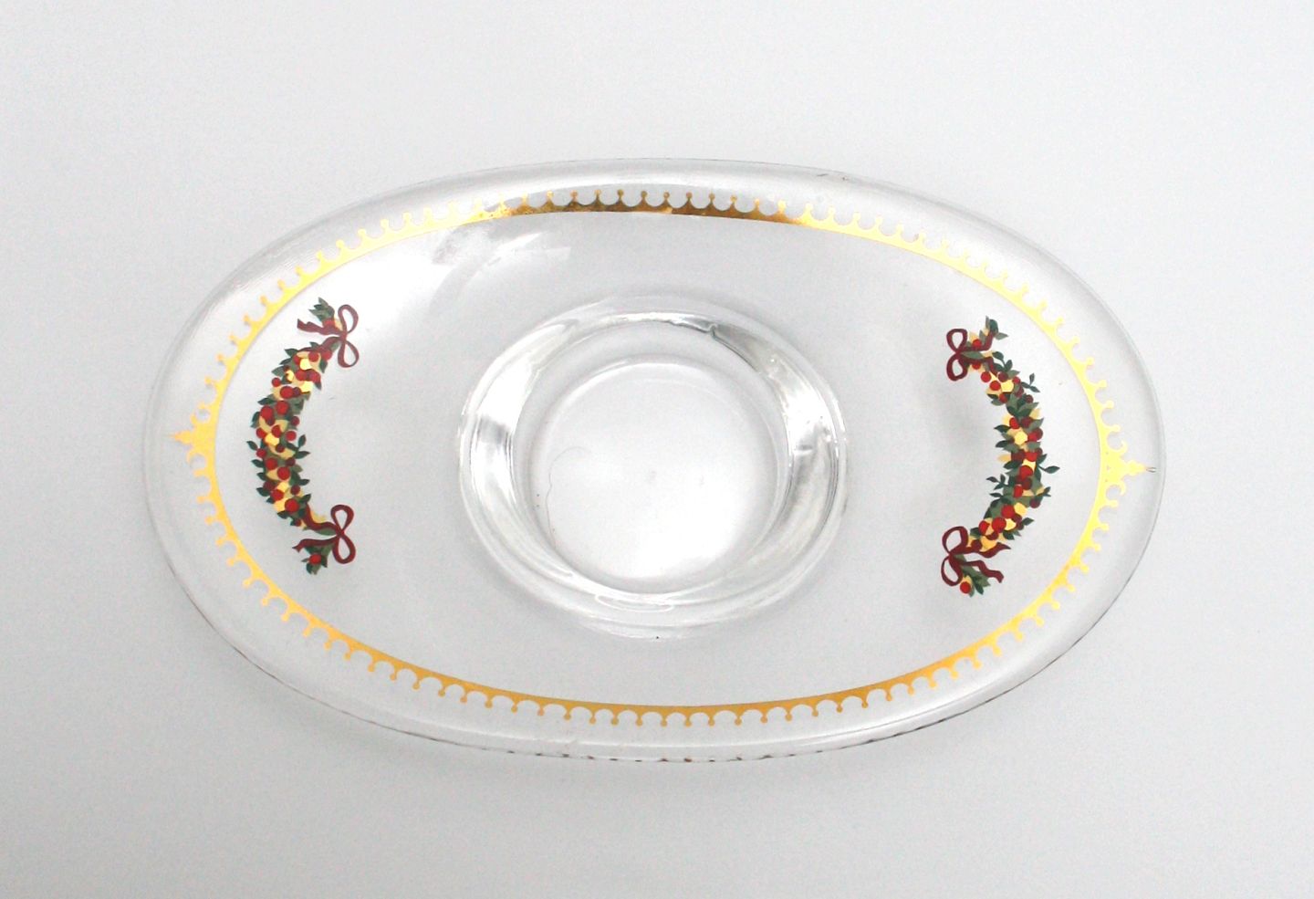 Holmegaard, Golden Christmas kalenderstage 1999, Bær og greneranker. Designet af Michael Bang/Peter Svarrer og Jette Frölich. Længde 18,5 cm. Bredde 12 cm. Højde 3,5 cm. Pris: 150 kr. stk. Lager: 2
