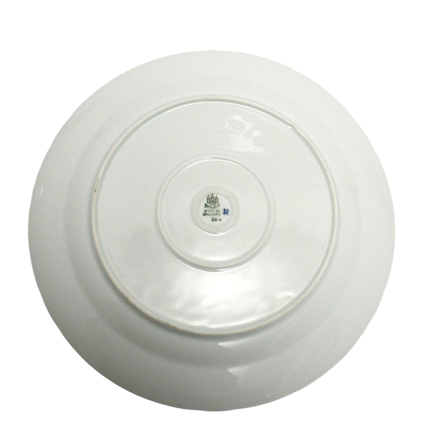 Bing og Grøndahl, Blåmalet (musselmalet), hvidt porcelæn med skelmønster. Stor flad middagstallerken. Nr. 25A. Produceret 1952-1958 fremgår af mærket. Diameter 26 cm. II. sortering. Brugsslid på overflade. Enkelte med små brændingspletter. Pris: SOLGT