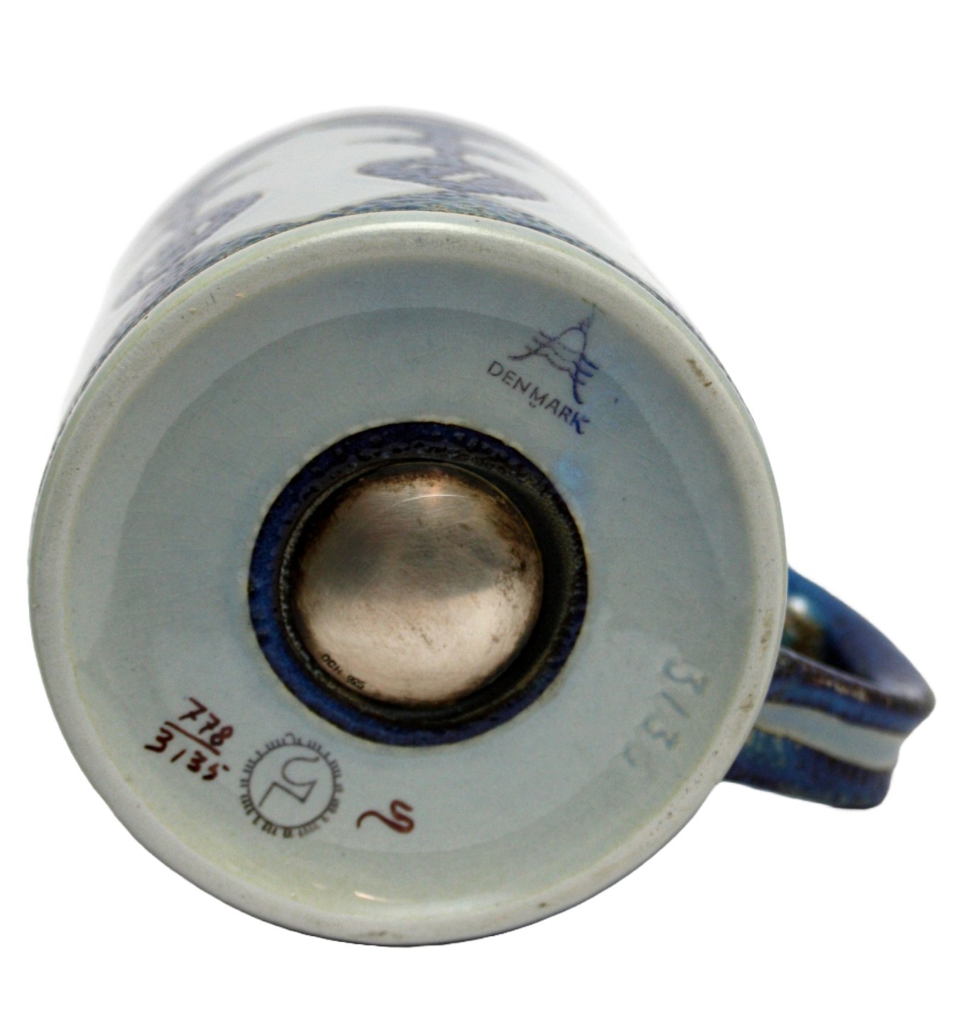 Aluminia, Stort årskrus 1967 med sølvplaquette i bund. Designet af Nils Thorson. Nr. 778/3135. Det første årskrus der blev lanceret. Årskrusene fra Royal Copenhagen udkommer stadig hvert år. Højde 11,5 cm. Diameter 10,5 cm. I. sortering. Pris: SOLGT