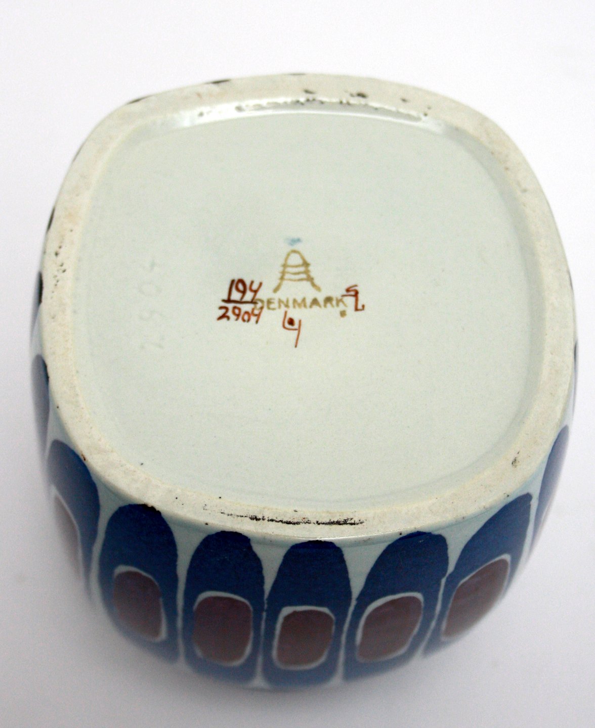 Aluminia, Tenera, Krukke eller vase. Designet af Inge-Lise Koefoed. Nr. 194/2904. Højde 10 cm. Bredde 9,5 x 9,5 cm. Flot stand. Pris: 375 kr.