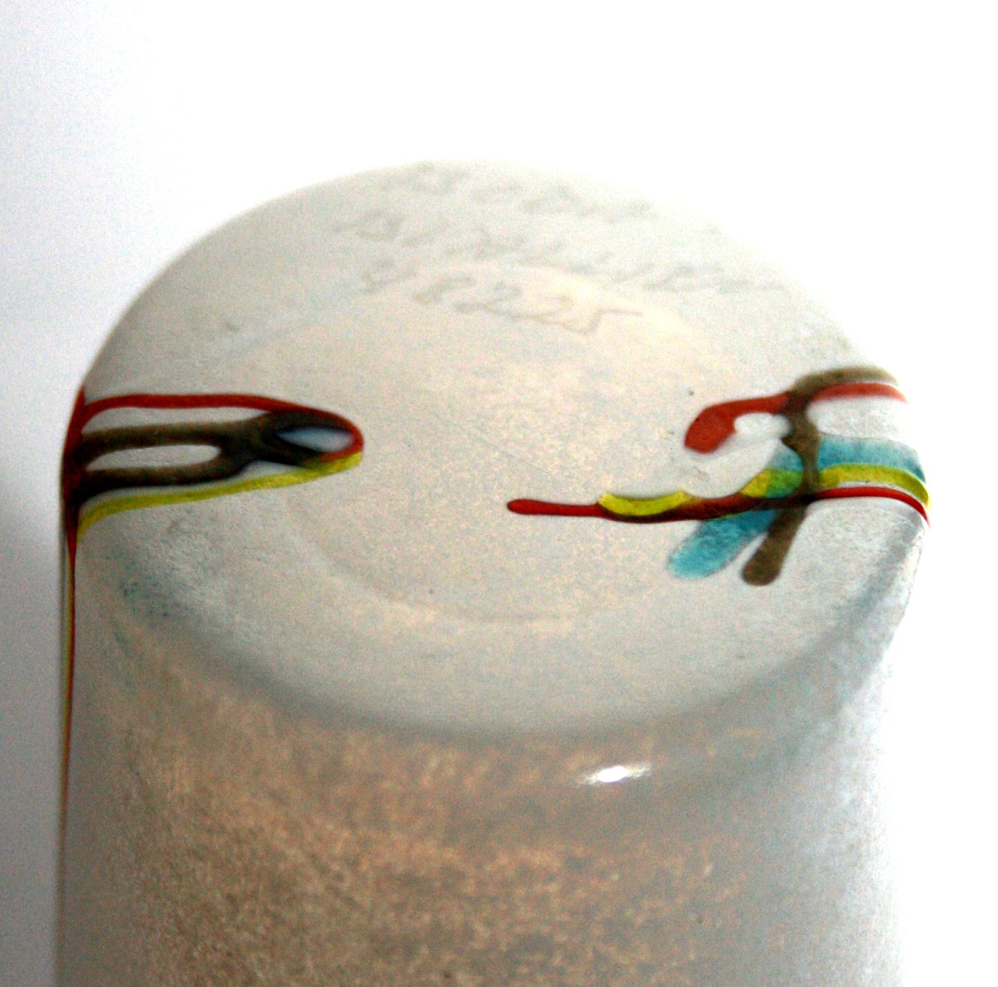 Kosta Boda, Sweden, Rainbow kunstglas lille vase eller bæger. Designet af Bertil Vallien. Signeret med navn og nr 48225. Højde 8,3 cm. Længde 7,5 cm. Pris: 125 kr.
