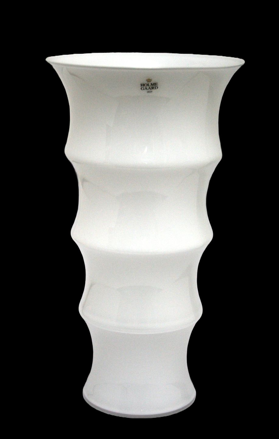 Holmegaard, Karen Blixen opalhvid vase stor størrelse. Designet af Anja Kjær i 2000. Vasens form er inspireret af afrikanske kvinders hals og armringe. Højde 30,5 cm. Diameter 17,5 cm. Originalæske medfølger hvis ønskes. Pris: SOLGT
