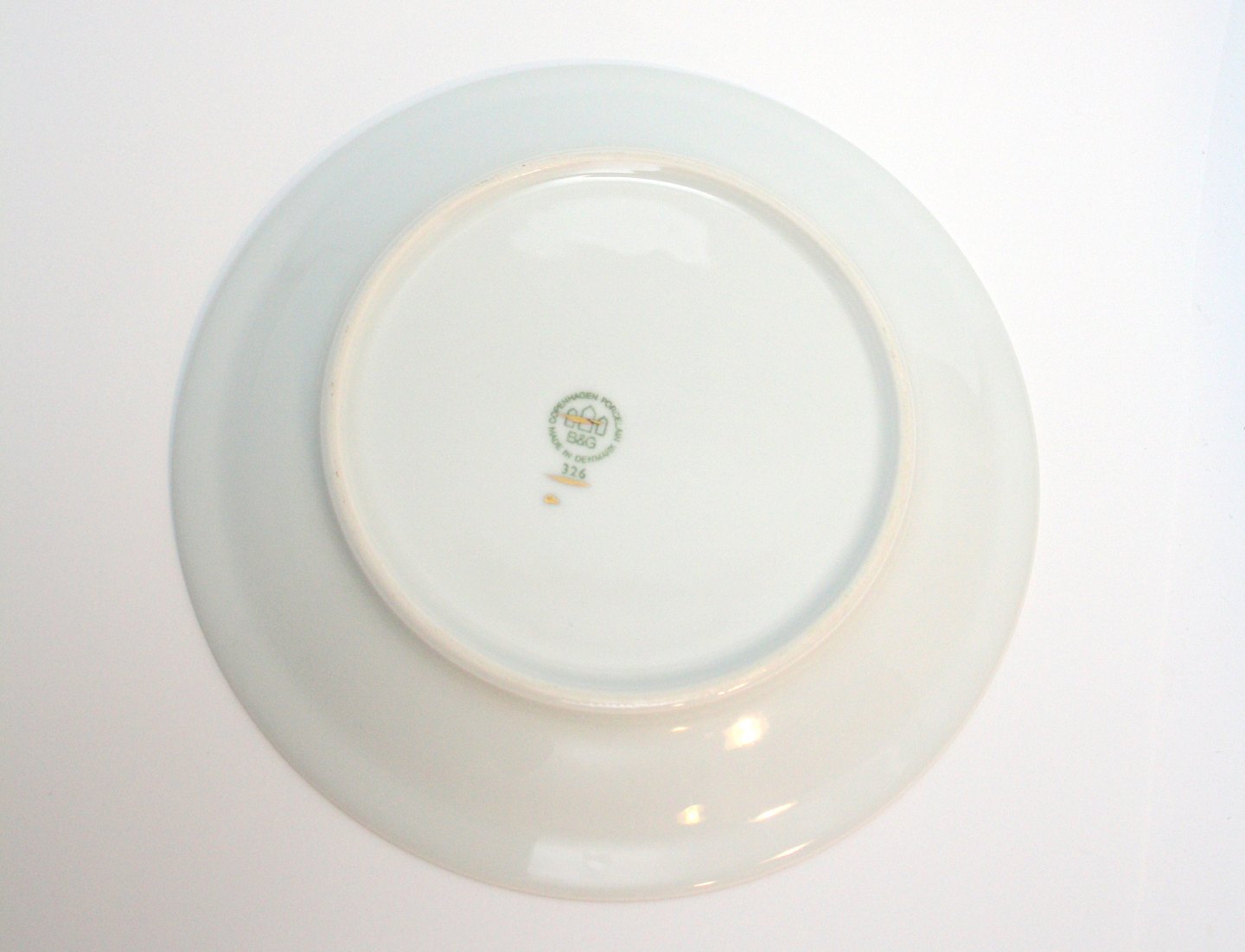 Frokosttallerken. Nr. 326. Diameter 21 cm. Almindelig brugsslid, lidt overfladeridser og slid på guldkant, men ok stand. Pris: SOLGT
