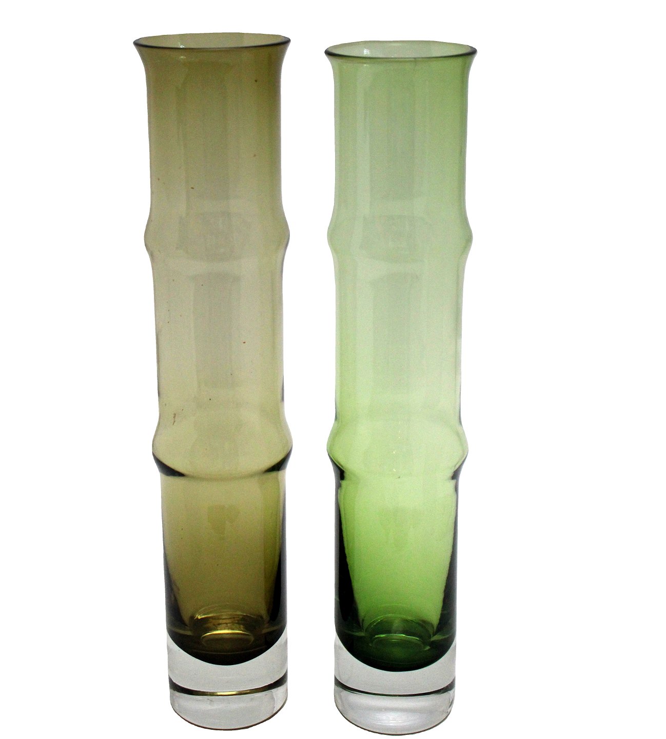 Åseda, Sweden, Bambu vaser i grønne nuancer. Designet af Bo Bergström i midten af 1960'erne, inspireret af bambus.