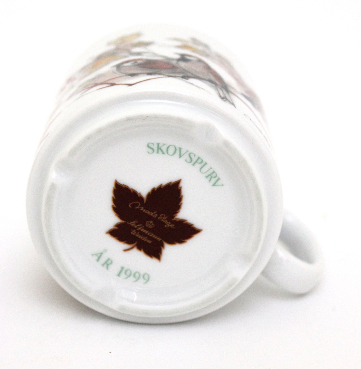 Mads Stage årskrus 1999. Skovspurv. Højde 8,5 cm. Diameter 7,5 cm. Pris: 175 kr. stk. Lager: 4