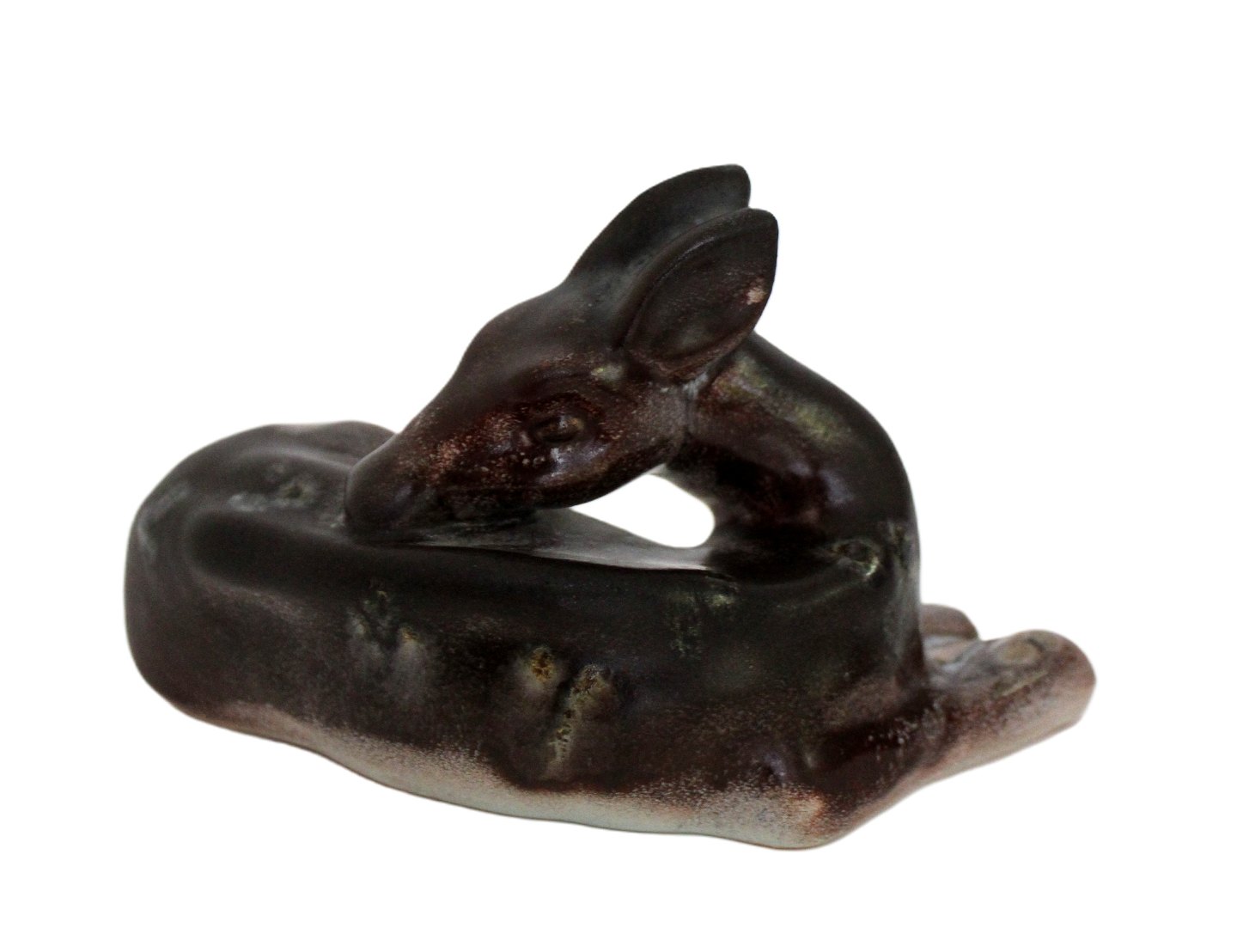 Michael Andersen, Bornholm, Liggende Hjort. Nr. 3225. Ældre model. Længde 14 cm. Højde 8 cm. Pris: SOLGT