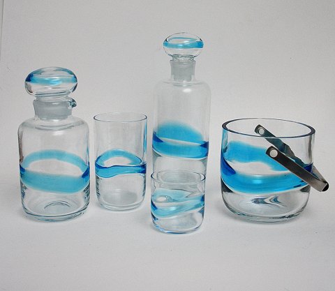 Holmegaard glasværk, Blå time barserie fra 1971. Designet af Christel og Christer Holmgren. Drinksglas, højde 8,8 cm. Diameter 8 cm. signeret i bund "HG2" for 1972. Pris: 325 kr. stk. Lager: 4