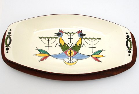Aflangt fad på teak stativ, Symfoni, Knabstrup