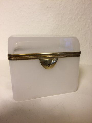 Sukkeskrin eller kandisskrin i lys opalineglas med messingmontering.