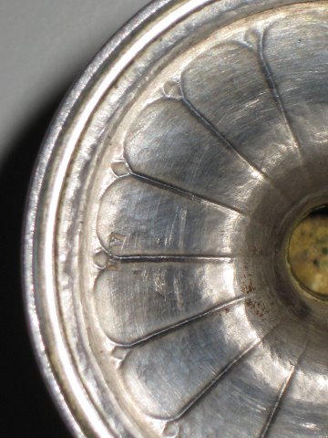 Kalk i søvl med forgyldtcupa,lille flaske og disk.Kalken graveret,W.F.Engelbreth, den 12 Juni 1845.Der medhøre smukt etui, hvori allle dele kan placeres