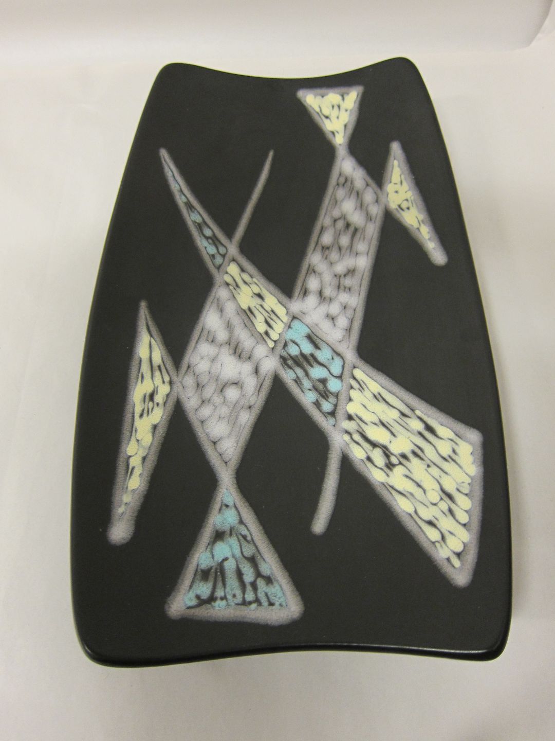 Søholm Keramikfad, Burgundia Bordfad fra 1956 Form: Holm Sørensen Glasur og dekoration: Sven Åge Jensen L: 40cm, B: 24,5cm Bemærk: Lille afslag på bagsiden af kant (se foto) Varenr.: 41121