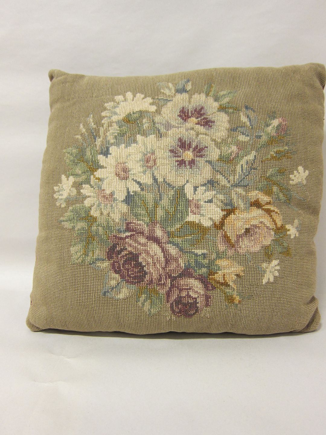 Pyntepude, håndbroderet med petit point (meget små korssting over kun 1 tråd) Mål: 28cm x 28cm Varennr.: 5156