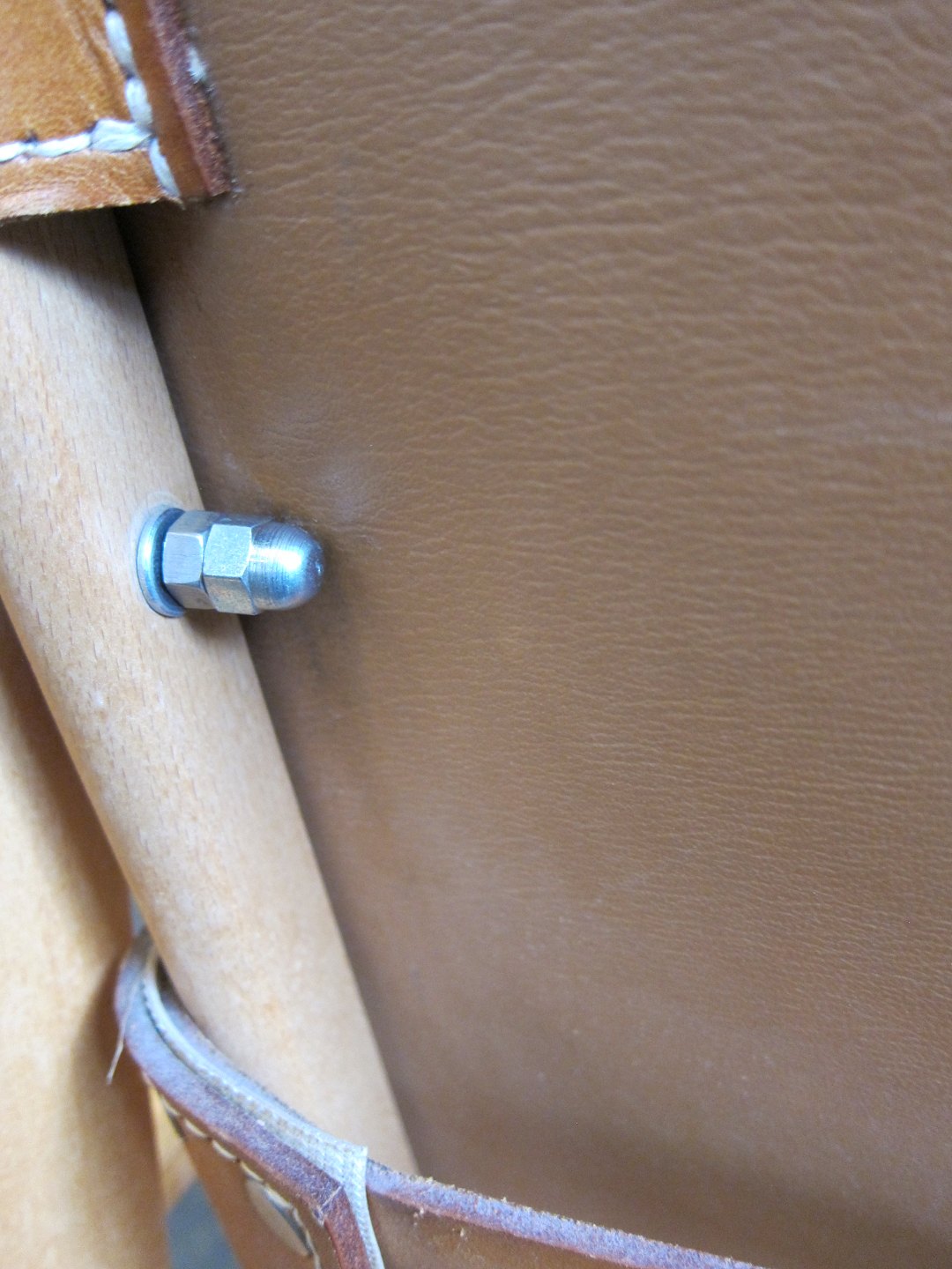 Safaristol i kernelæder Fremstillet hos Aage Bruun & søn Bemærk: skjold på sæde, mangler hynde (se også fotos) Varenr.: 1005