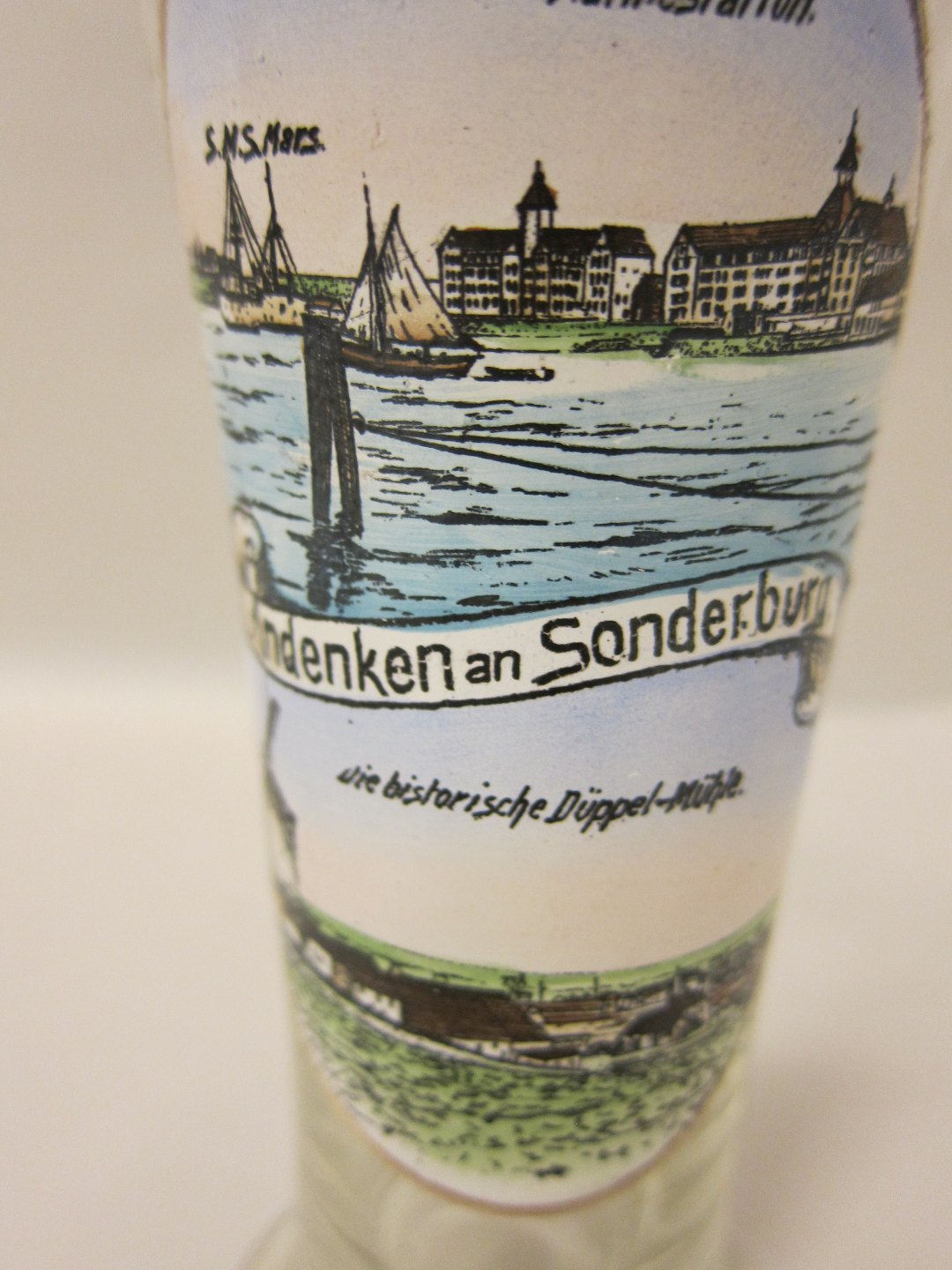 Erindringsglas med tekst: "Andenken an Sonderburg", "Marinestation", "S.M.S. Mars" "Die historische Düppel-Mühle" (se foto)