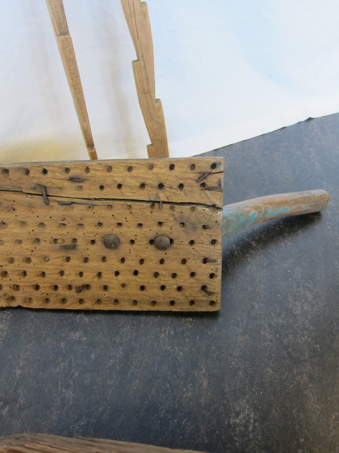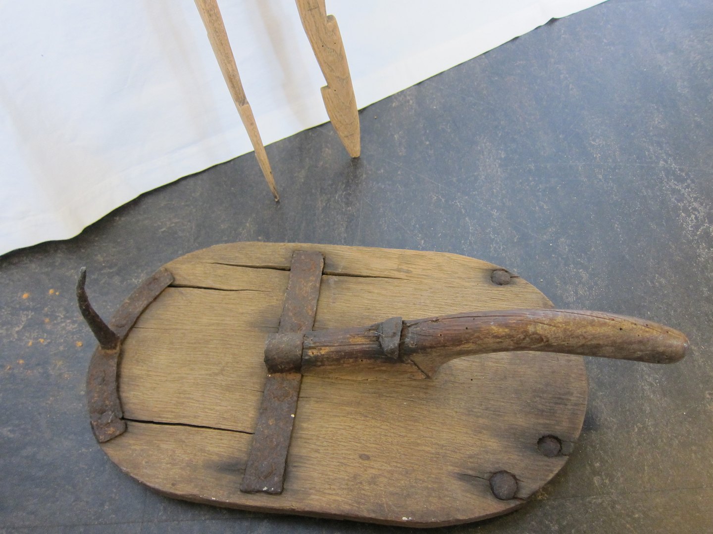 Disse redskaber er gammeldaws udgaver af bl.a. tækkeskovle/-klappere, som tækkemanden brugte til at banke stråene på plads, når taget skulle tækkes