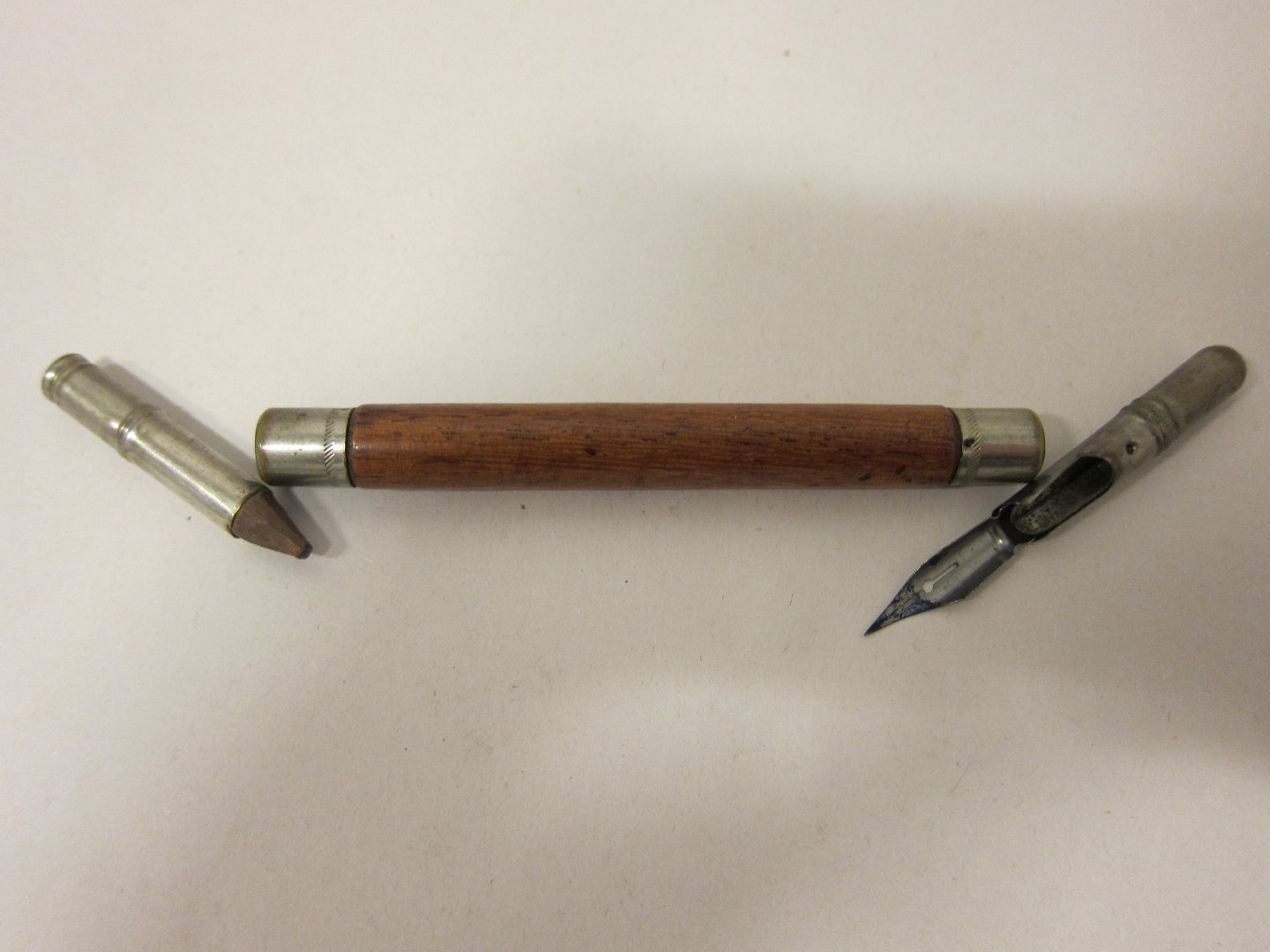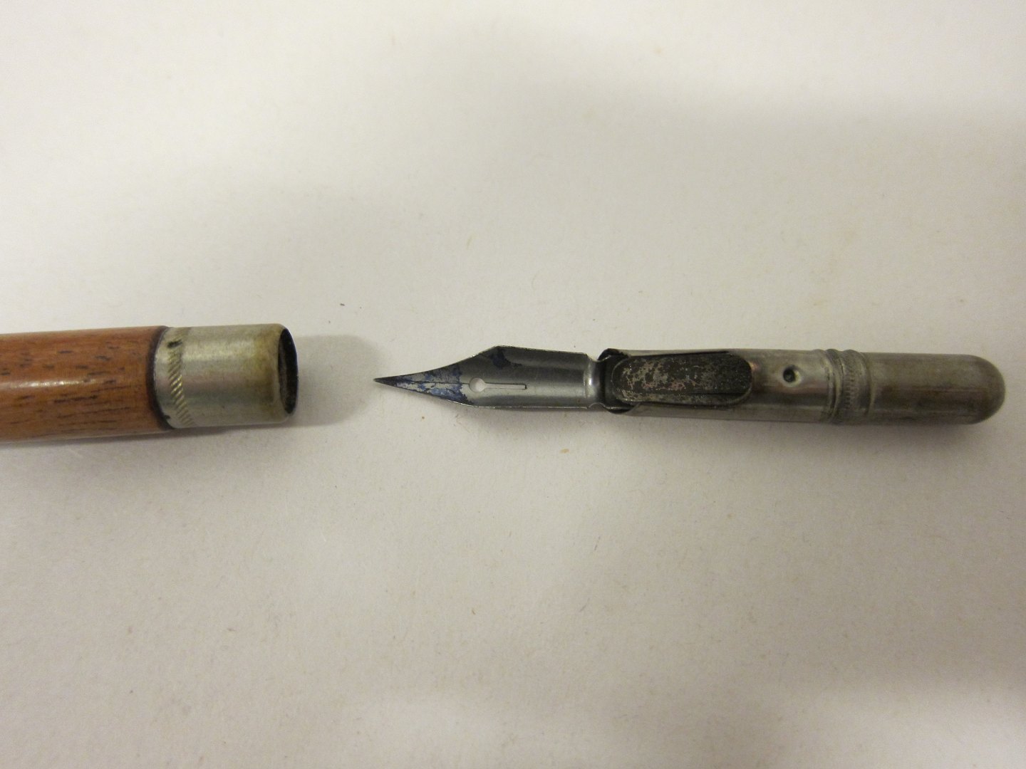 Gammelt træskaft i træ med plads til fyldepen-hoved og blyant Varenr.: 1006