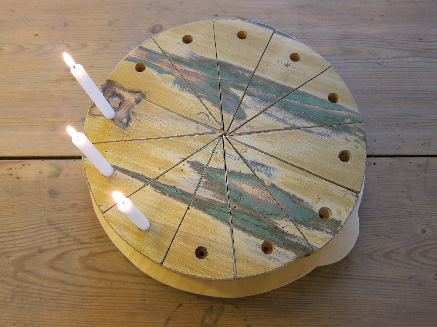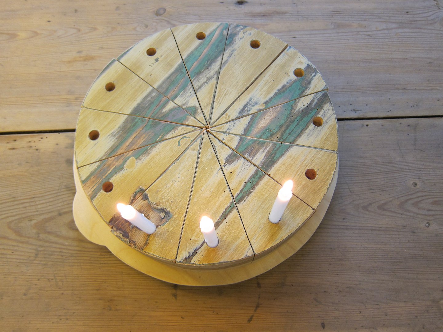 Lyslagkagen ”CAKE” fra Gold-Li Design er lokalt design og godt sønderjysk håndværk. ”CAKE” bygger på idéen om at bruge gammelt træ til ny-designede produkter, og den er derfor fremstillet af brugt træ.