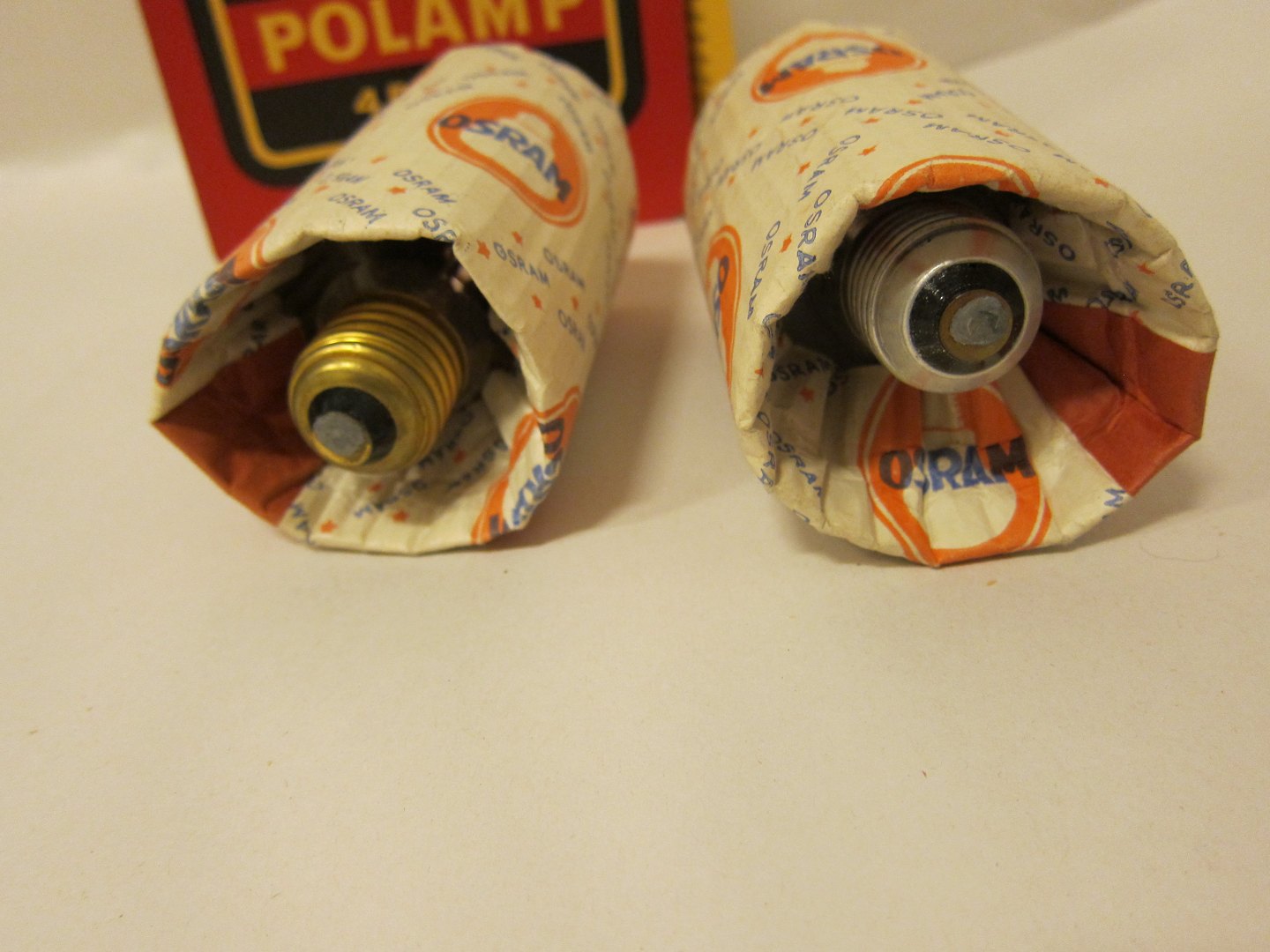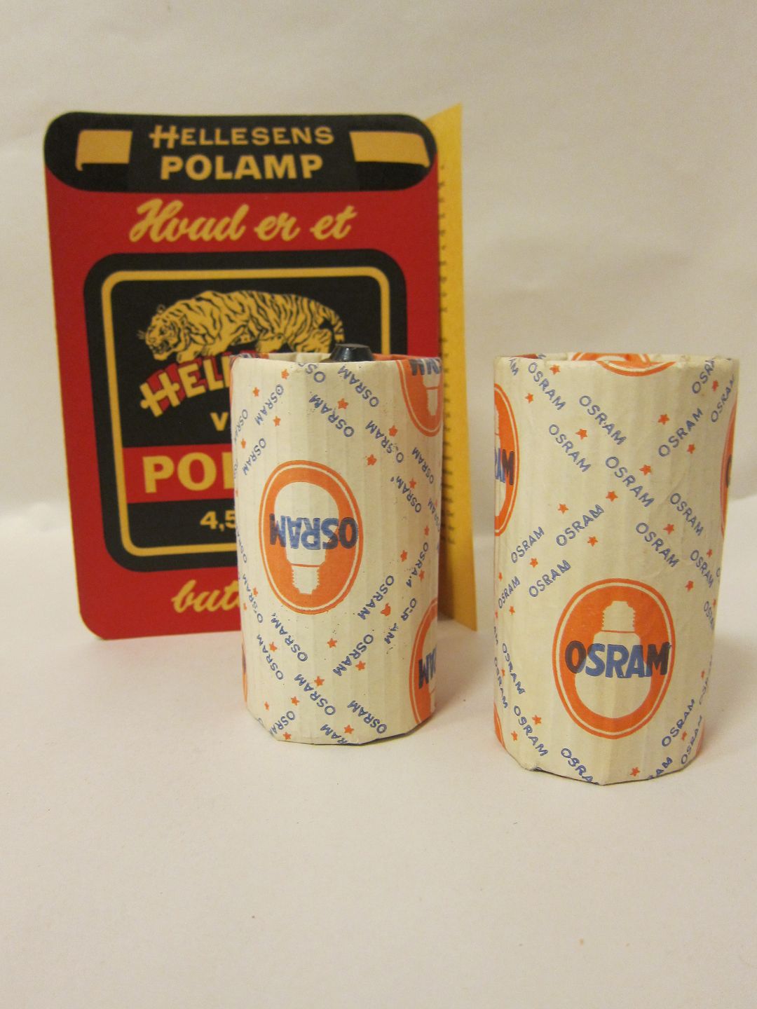 Hellesens 3-fløjet reklameskilt og Osram el-pærer