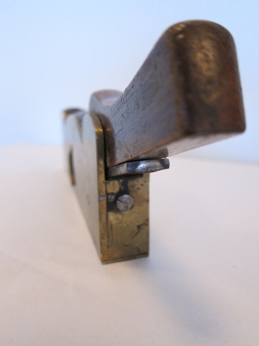 Høvl i træ og messing Meget dekorativ antik høvl L: 27cm Vi har et stort udvalg af gammelt værktøj Kontakt os for yderligere information Varenr.: 41962