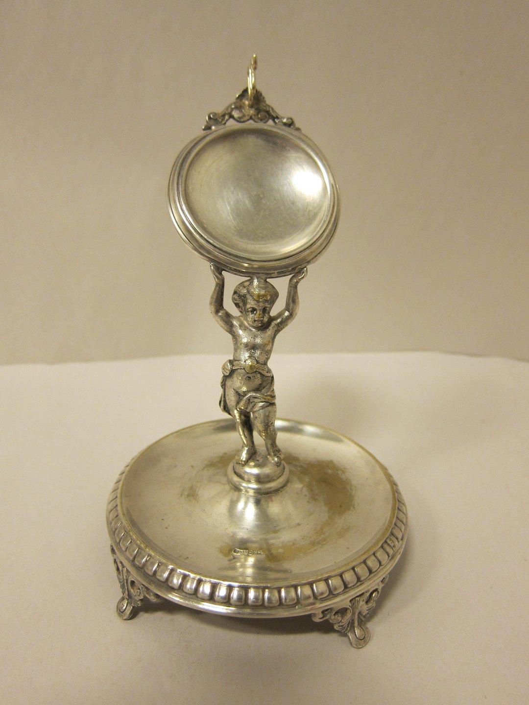 Urholder i sølvplet Holder til lommeuret H: 16cm Bemærk: Slid Varenr.: 41331