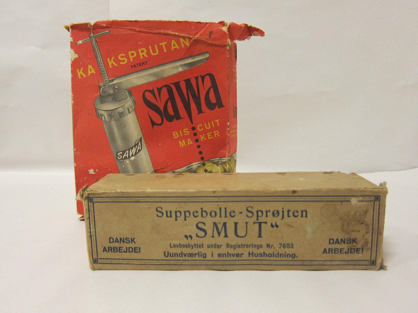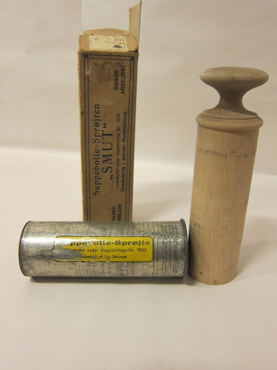 Smut bollesprøjte Den gamle Smut bollesprøjte inkl. den originale æske "Uundværlig i enhver husholdning" Se også vores gamle kagesprøjte Varenr.: 51252
