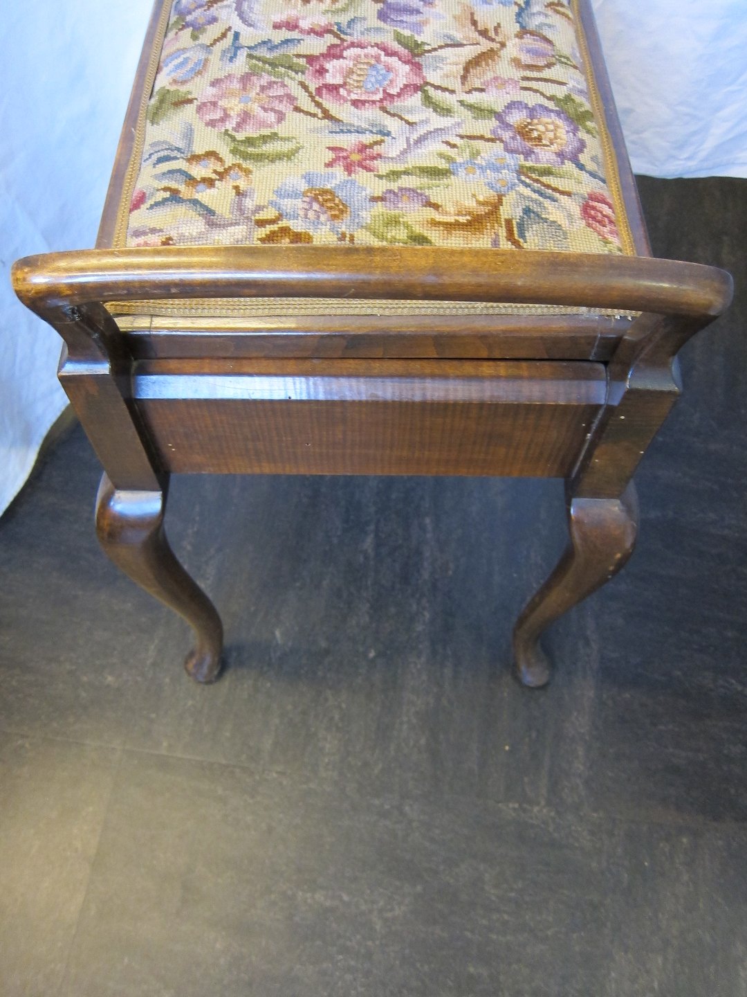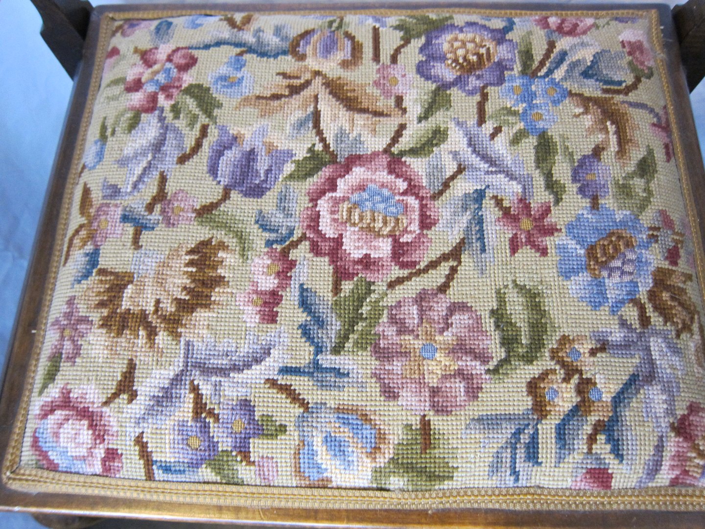 Taburet/klaverbænk med 2 "håndtag" og et meget smukt korsstingbroderi (intakt) på sædet