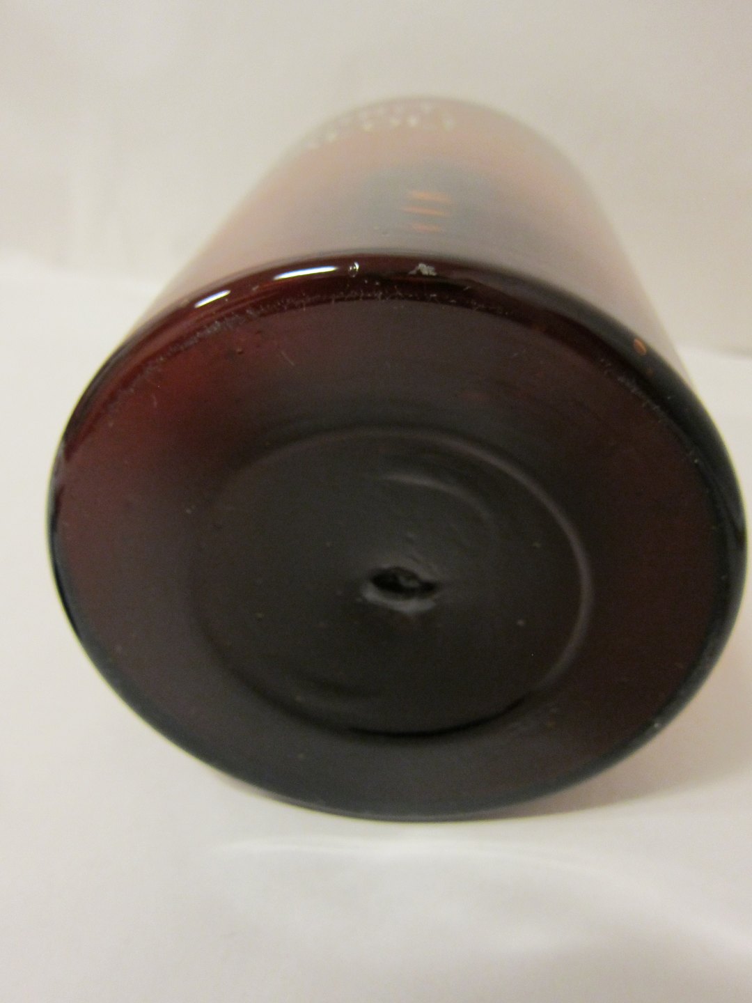 Apotekerflaske med tekst og med prop Tekst: "SPIRIT. SALOLI" Formentlig Gråsten Apotek H.: 27,5cm inkl. prop Bemærk: Skår i prop Varenr.: 7123