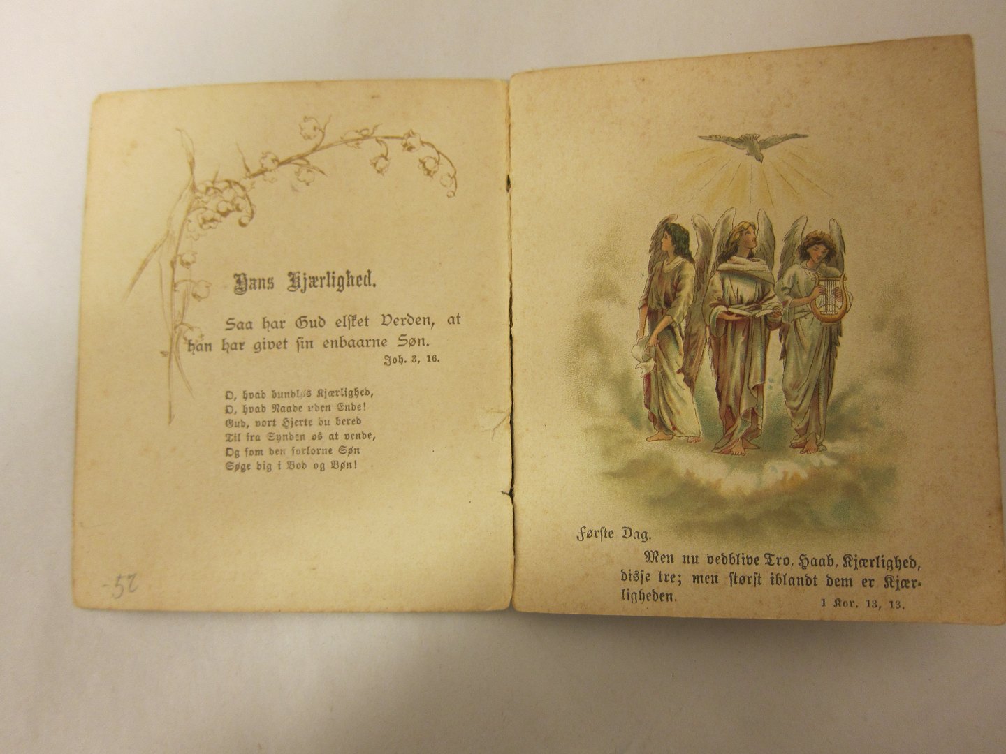 Gammel lille bog med bibelsprog og smukke tegninger
