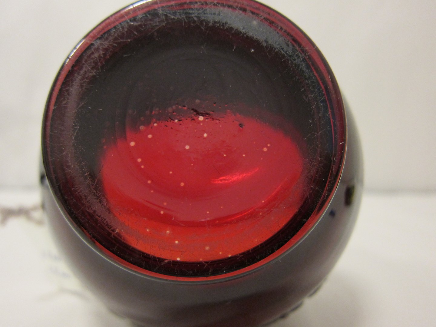 Smuk antik rubinrød glasvase med en dekorativt udført tin-besætning i skønvirkestil.