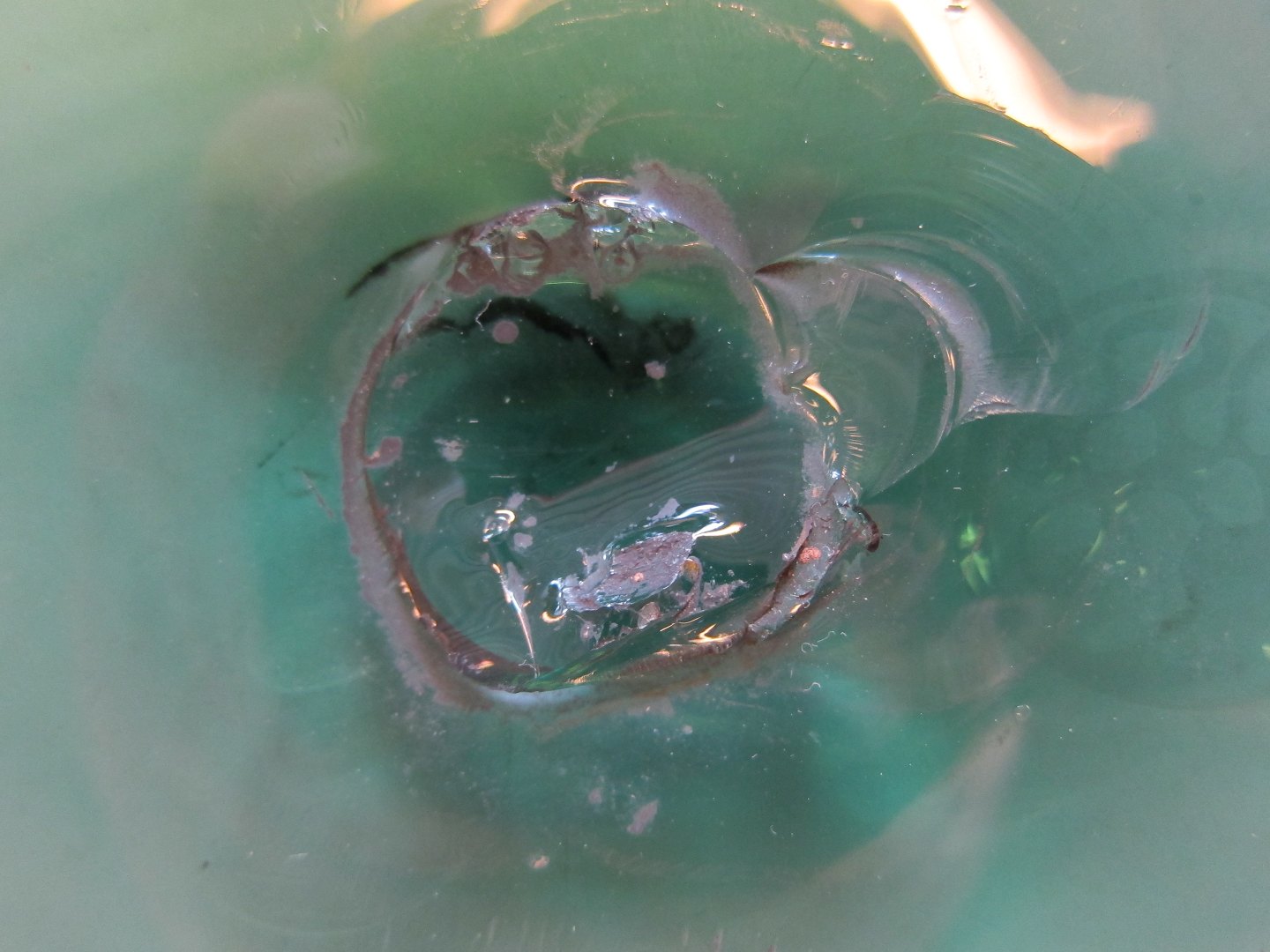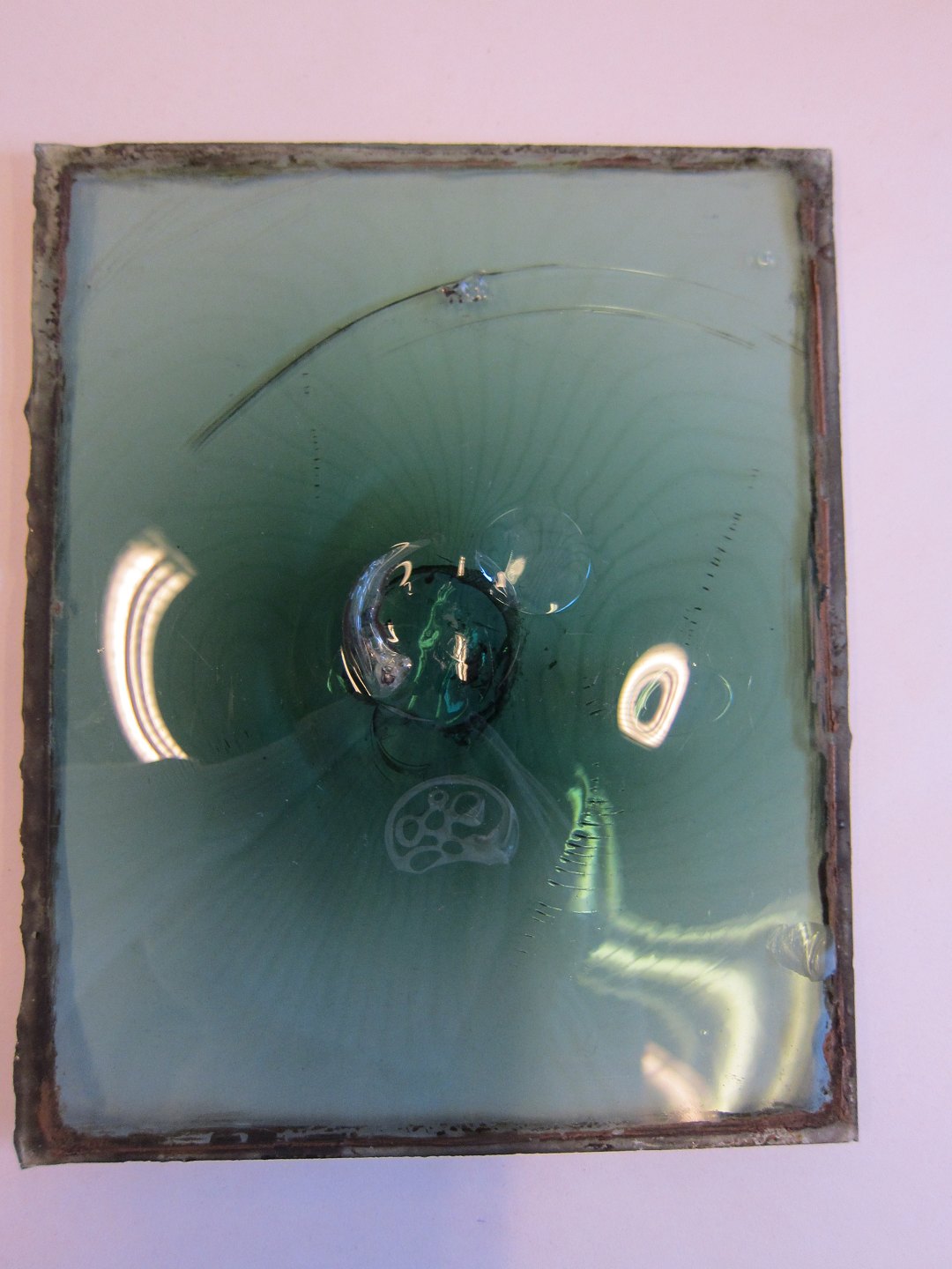 Et antikt, utrolig smukt, sjældent og mundblæst flaskebundsglas, som er cirkelformet. Dette benævnes også som "okseøje"