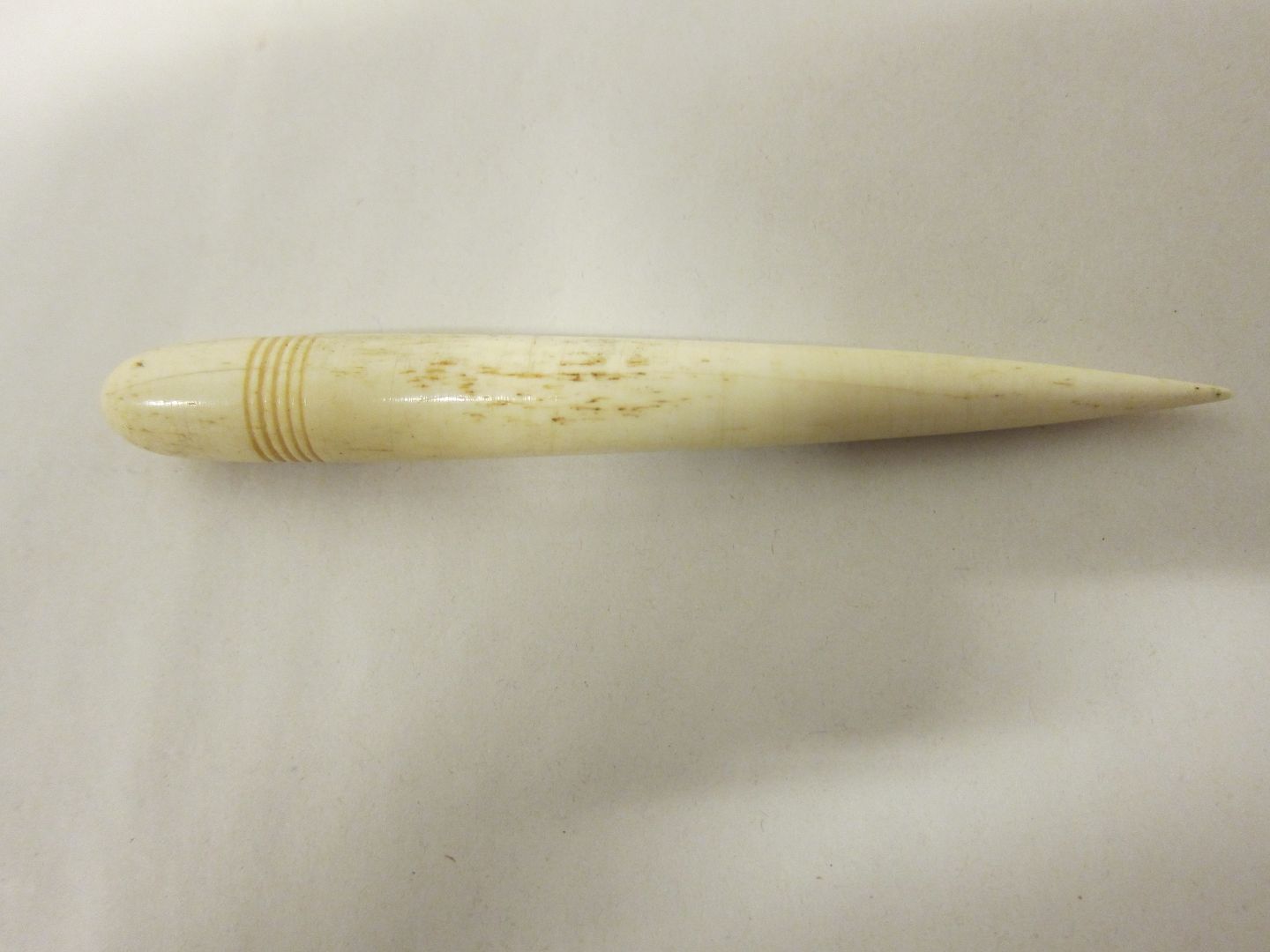 Kraftig og smuk gammel pren, lavet af ben, bemærk hvor dekorativ den pren er. Ben-materialet gør den ekstra behagelig at arbejde med