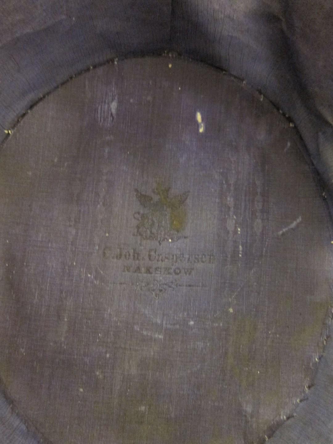 Høj hat (dårlig stand) i muldvarpeskind medfølger (uden omkostninger), Tekst: C. Joh. Caspersen, Nakskov